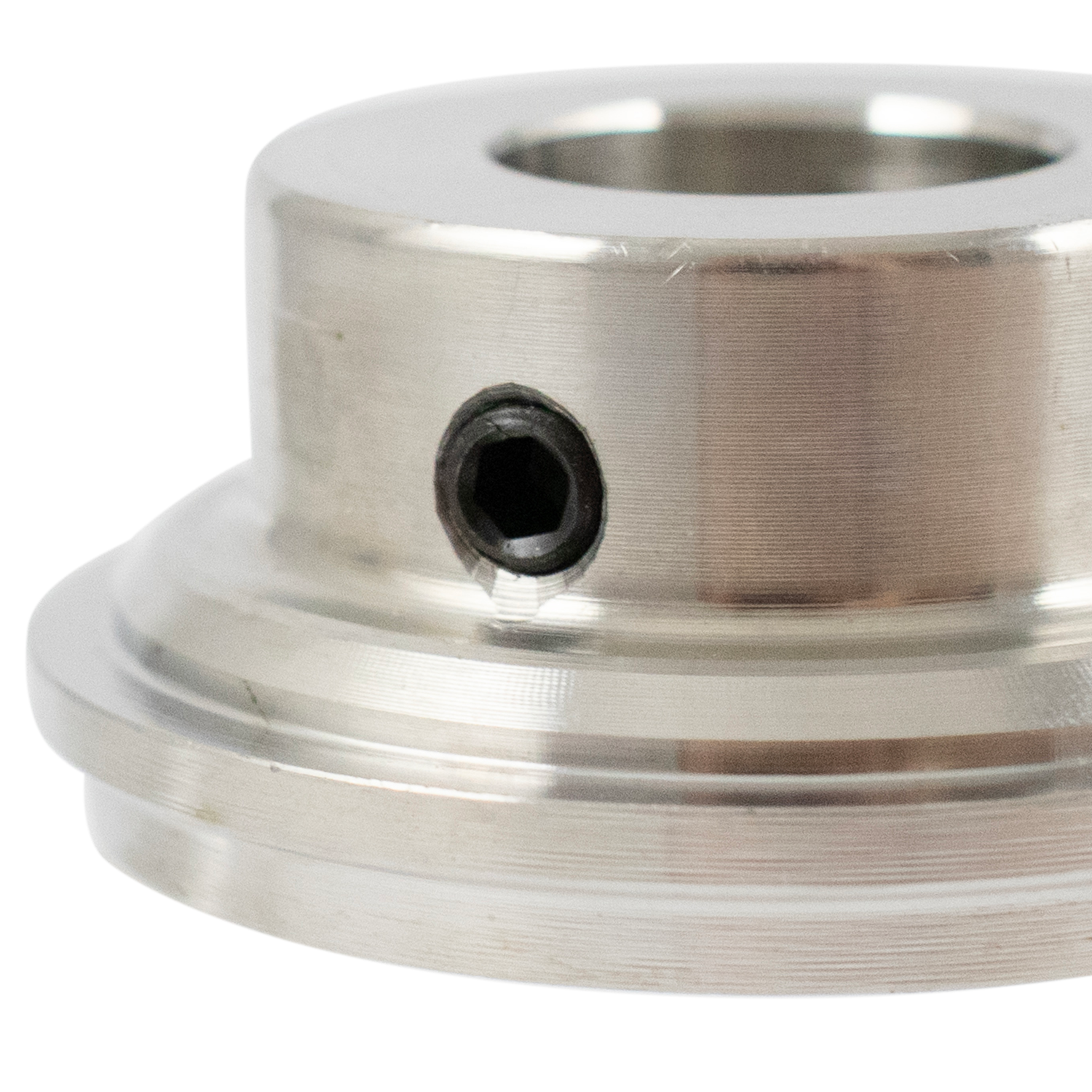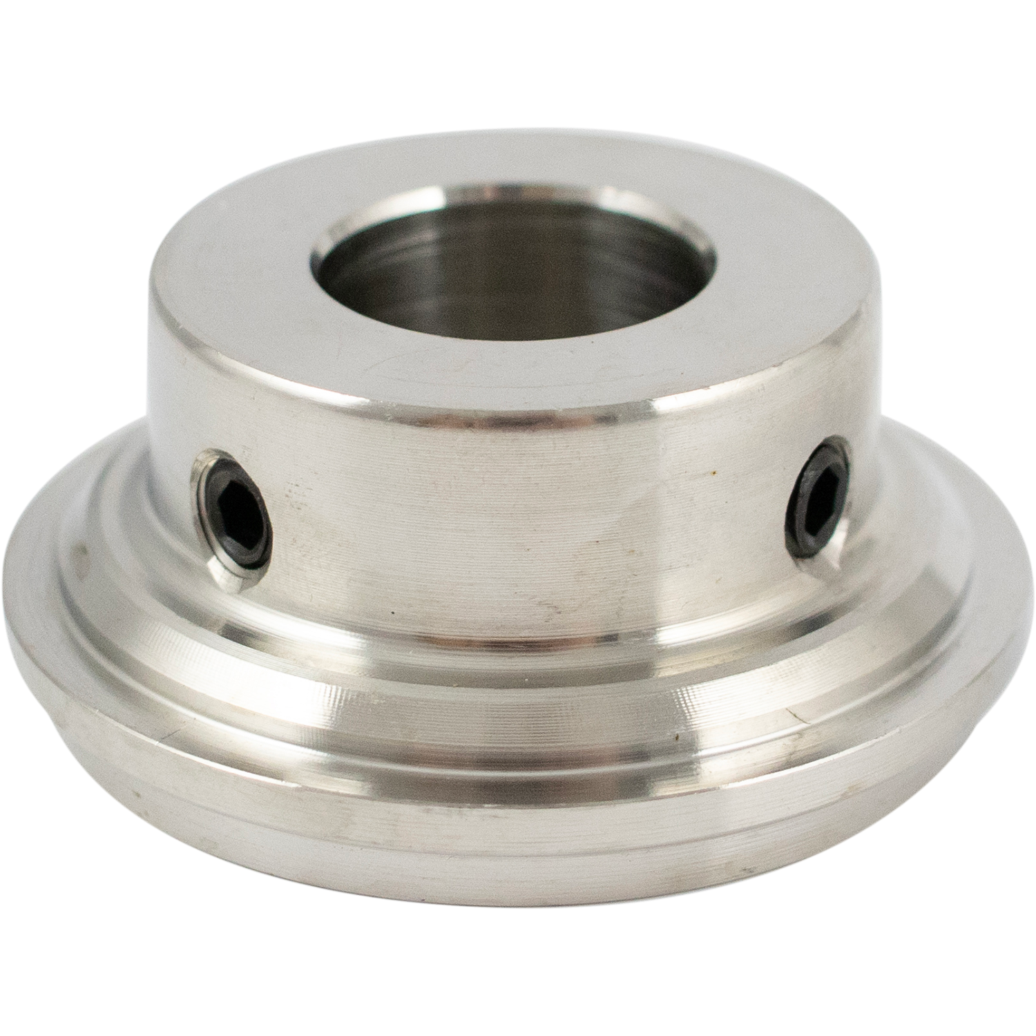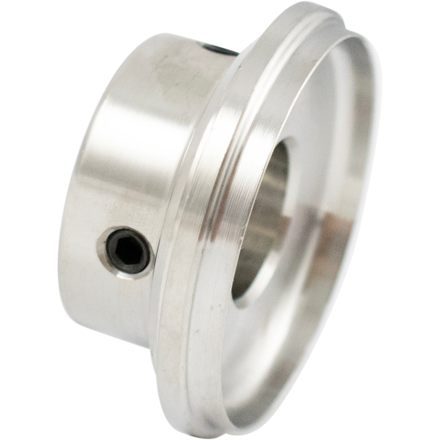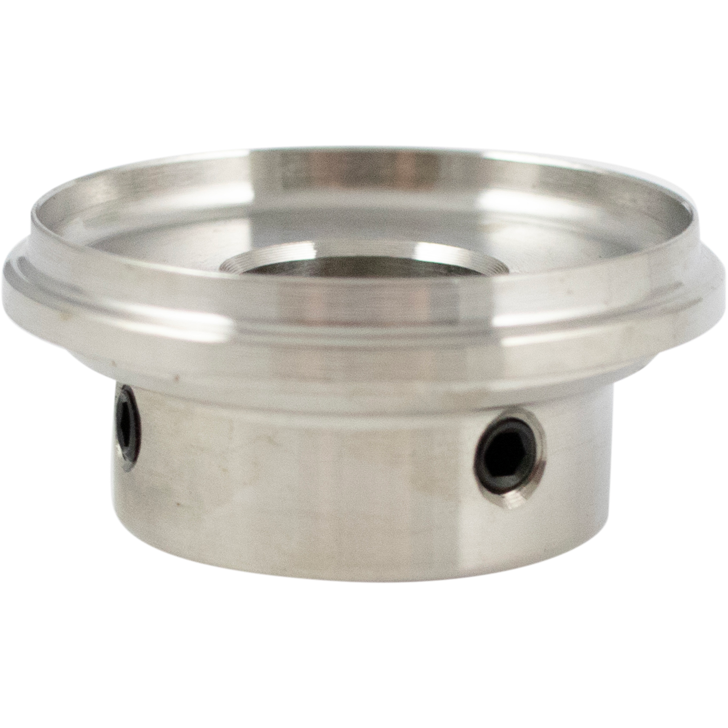 This chuck allows the Cannular Bench Top Canning Machine to be used with Visy/CDLE ends. Instead of changing the rolls, simply swap the chuck, make minor adjustments to the rolls and table height, and you can quickly seam CDLE ends.