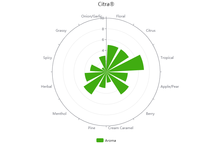 Possibly the most popular modern brewing hop around. Citra® hops are highly sought after among craft and home brewers for their intense citrus aroma and flavor. Citra® boasts grapefruit and lime aromas along with gooseberry, passion fruit, and lychee notes. You simply can't go wrong using these hops for late additions or dry hopping when you want to make that ultimate hop bomb Hazy IPA. Citra® also has a fairly high alpha acid content making it a solid choice for bittering IPAs, Pales, and American Ales.