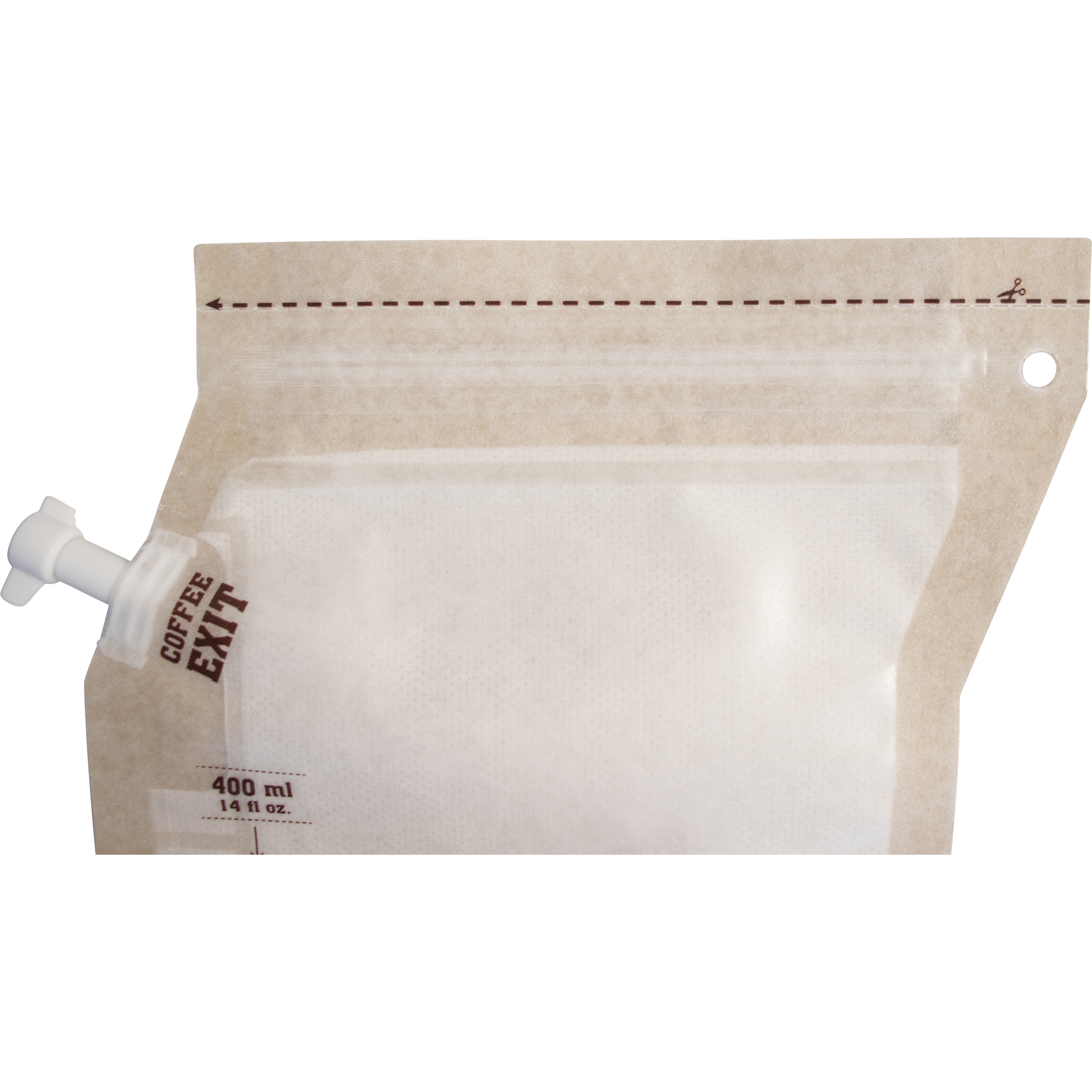 The newest, easiest way to brew high quality coffee on the go without any mess! Open the bag and add your ground coffee, pour in 10 to 13 ounces of hot water, let steep for 4 minutes, and pour coffee into your cup. The included Japanese filter material removes particulate giving you the best of both direct contact and pour over/filtered brewing methods.