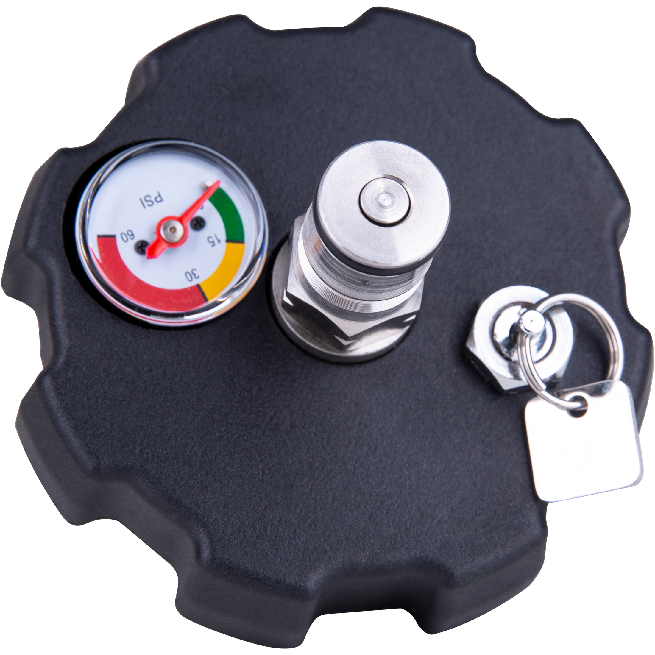The ball lock cap was engineered for a quality carbonating experience and built to last the rigors of the foodservice industry. Needless to say this ball lock growler cap will last a lifetime. Each cap comes with a fully integrated and easily adjustable PSI gauge, removable (and interchangeable) ball lock post (gas in), a safety valve that releases pressure automatically over 20 PSI, and a manual pressure release zipper tab so you can make your own adjustments! Made from 100% food safe materials, it is now easy and convenient to pressurize your favorite carbonated beverages from any CO2 tank at a moments notice!