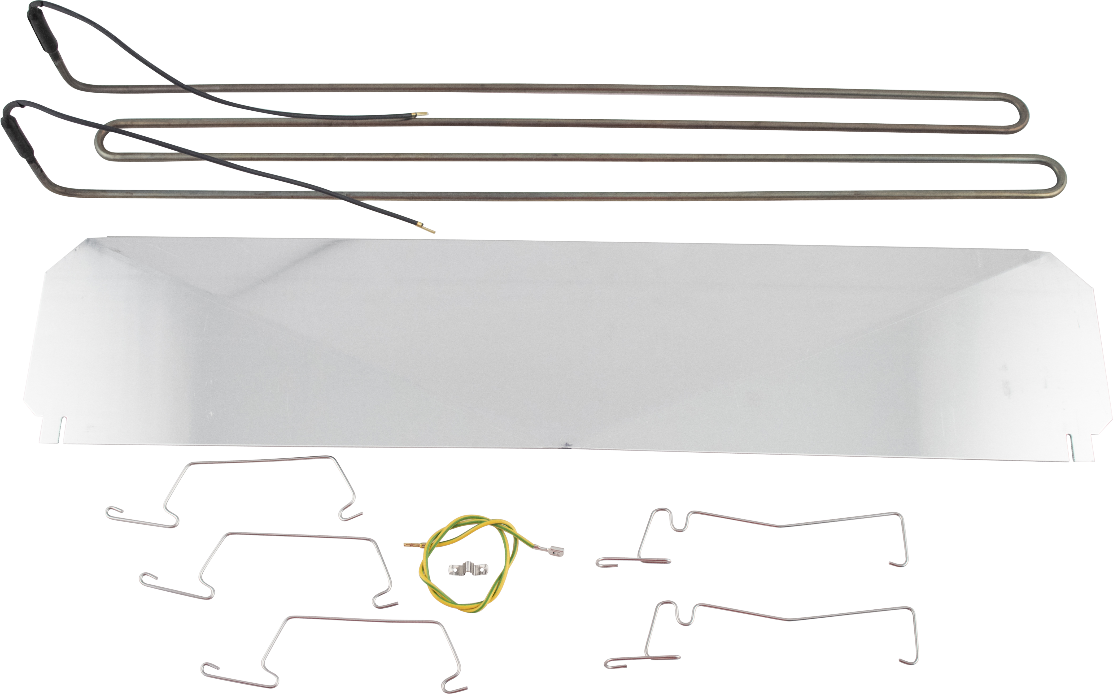 Defrost Kits are electric heating elements made of a set of thin metallic heating rods that are fitted into the suitable slots, under the coil of the thermo-fan. This layout simplifies the installation and guarantees homogenous dispersion of heat over the entire coil for even defrosting. The Defrost Kit melts the iced condensate, which accumulates on the airways when the fan is used for room cooling with Glycol-water set below the freezing point. Periodical defrosting enables the use of the thermo-fan for setting up cold-rooms, which are kept at low temperatures. The melted condense water drips to the fan's collection tray for drainage.