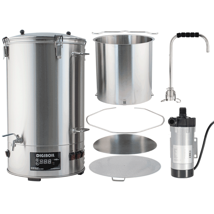 The DigiMash is one of the most affordable options in all-grain electric brewing. Includes 65L DigiBoil, DigiMash Upgrade Kit, and Recirculation Pump Kit.
