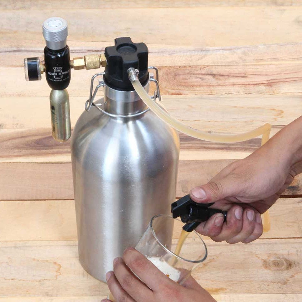Note: Does not come with CO2 regulator or cartridge. They must be purchased separately. We suggest one of our mini CO2 regulators (KEG965A) and cartridge (KEG962) or (KEG966) and cartridge (KEG993).