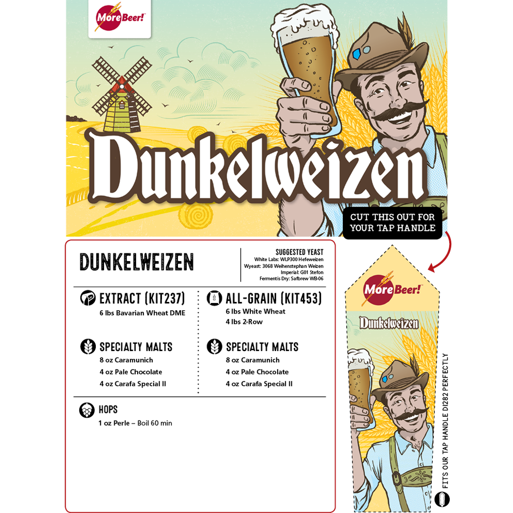 A true Dunkelweizen recipe. This beer style focuses on the traditional hefeweizen flavors and aromas but with more malt flavor. A nice blend of caramunich and chocolate malt help give the beer a nice dark color and round malt character.