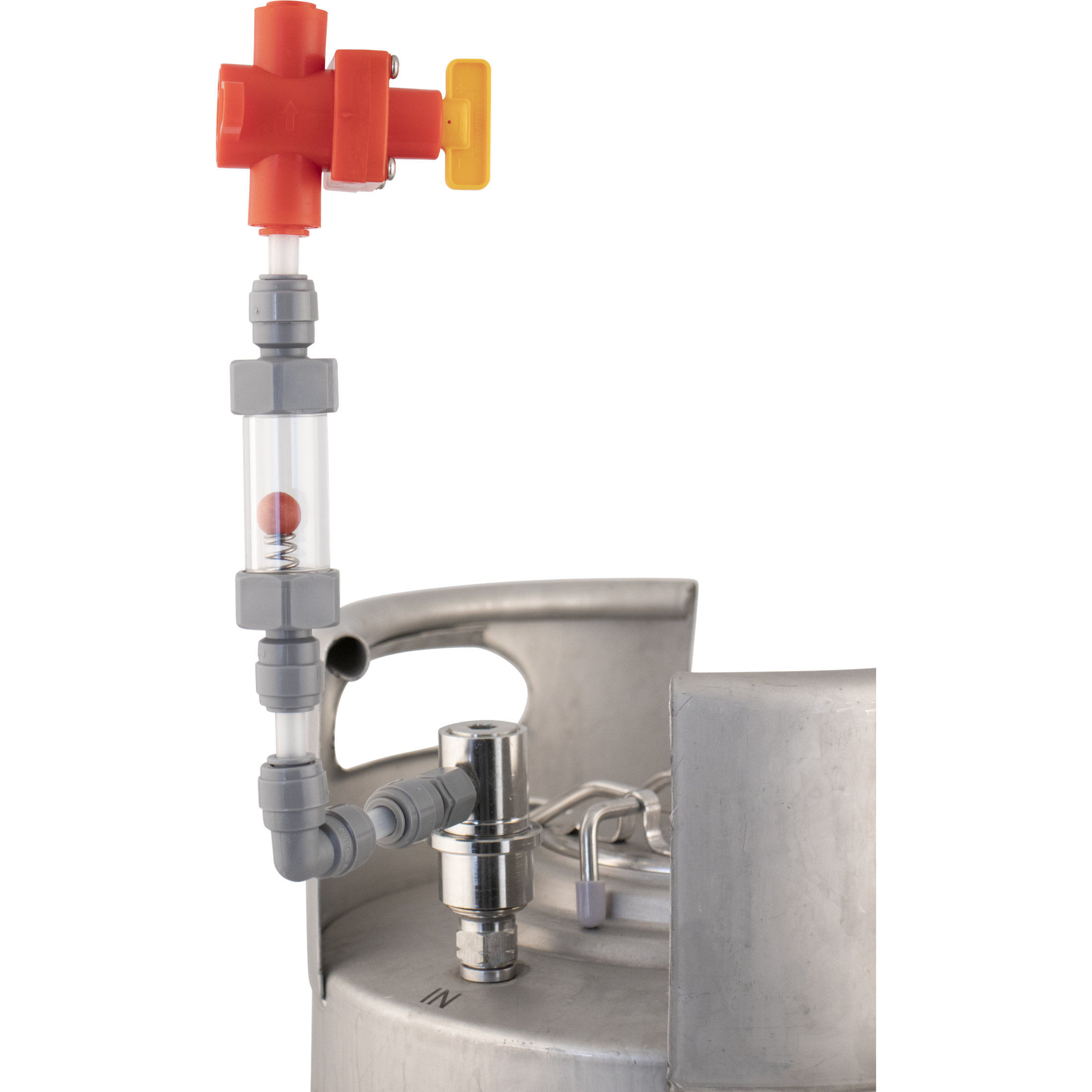 BlowTie Spunding Valve, which will enable you to apply head pressure to the keg. This allows you to control the flow speed and reduce the foam generated in the filling process. You will need a short length of 8 mm OD EVABarrier tubing to connect the BlowTie to the outlet of the Flow Stopper.