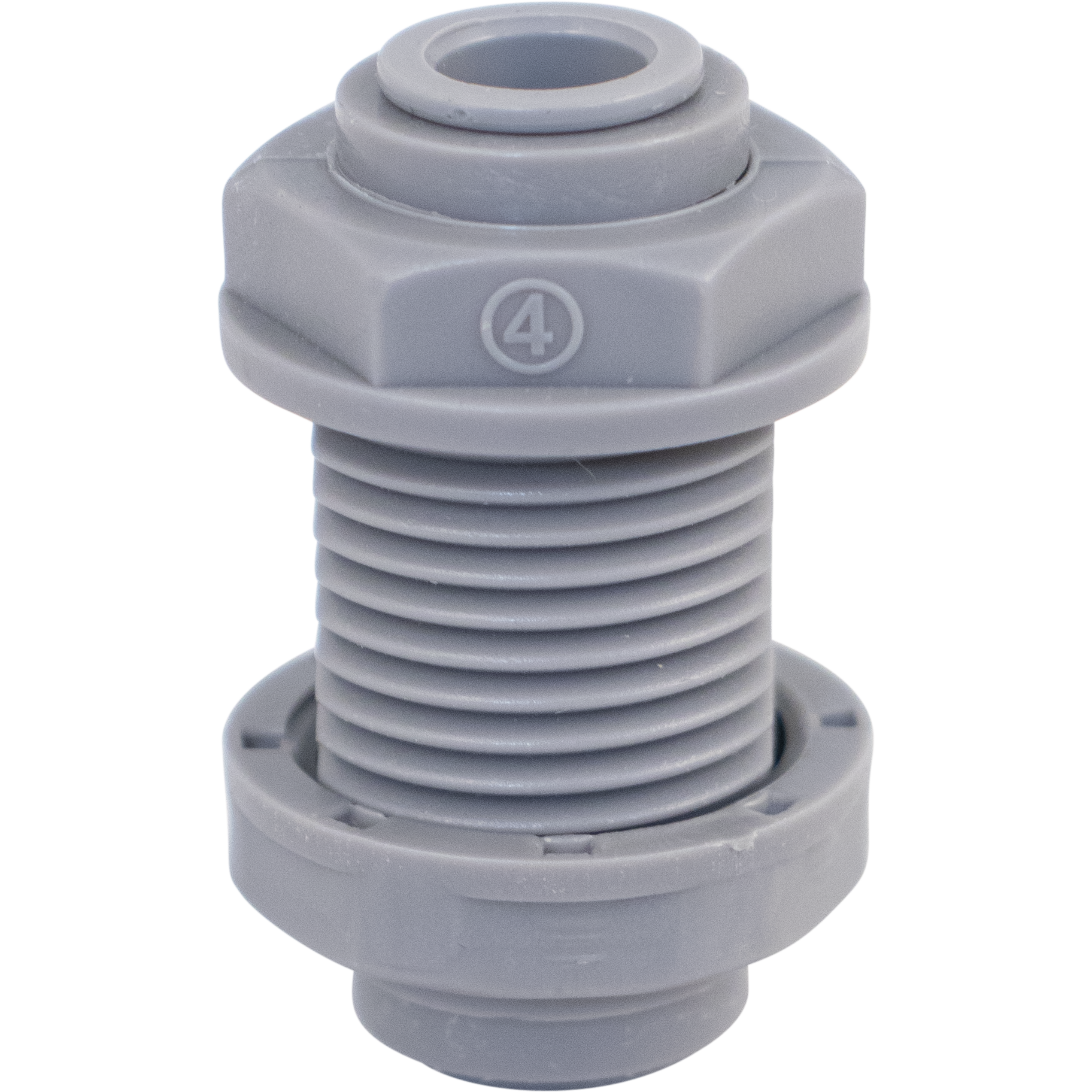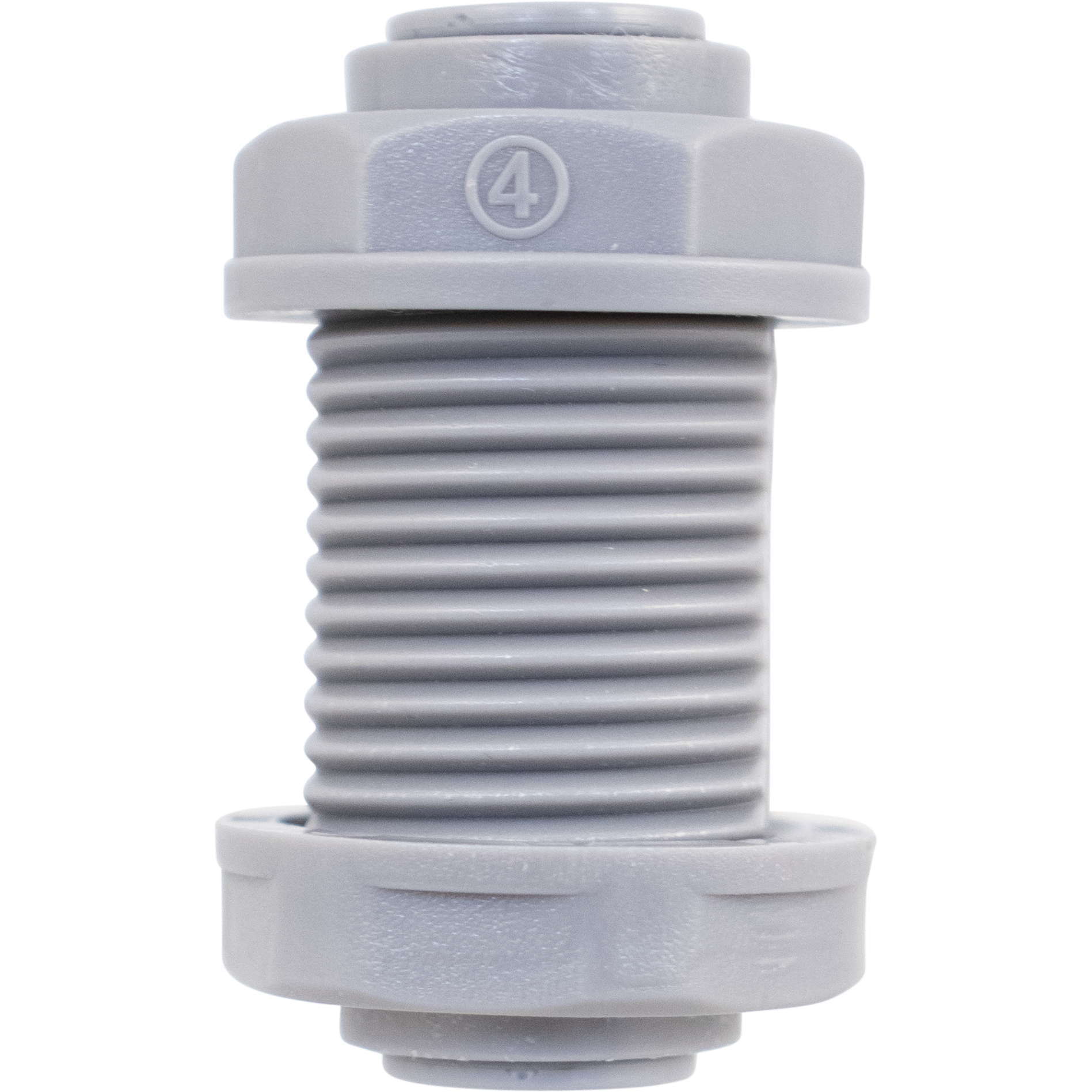This Duotight fitting is designed to go through the wall of a tank, housing, or wall, similar to a pass through shank, so you can run EVABarrier tubing from one side to the other. Compatible with EVABarrier 8 mm OD tubing (D1717 / D1718).