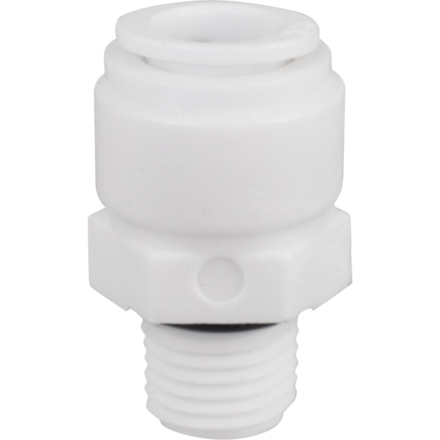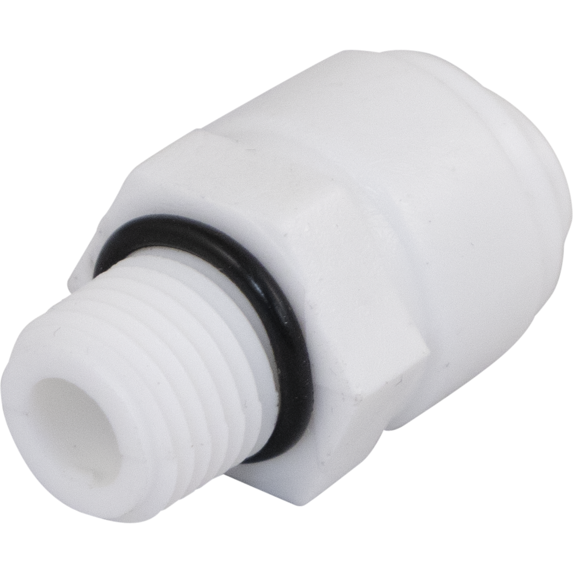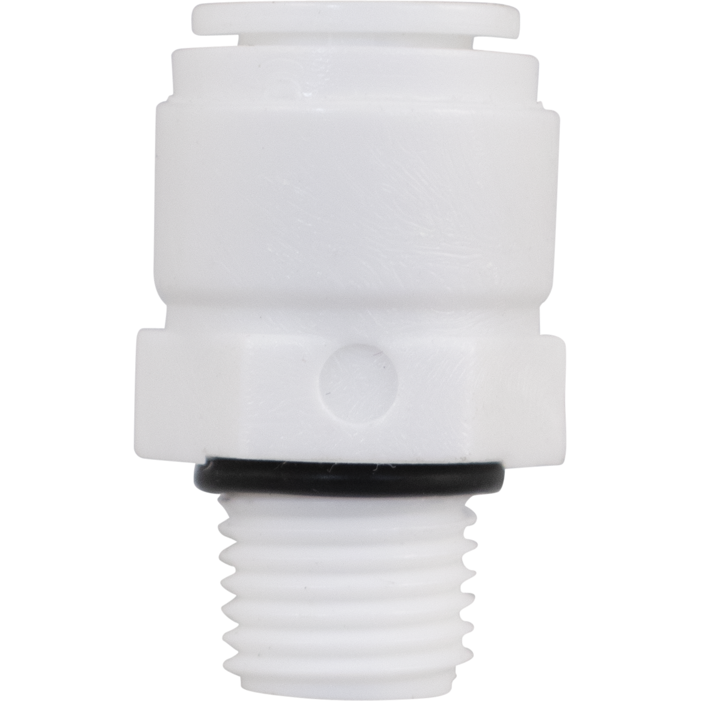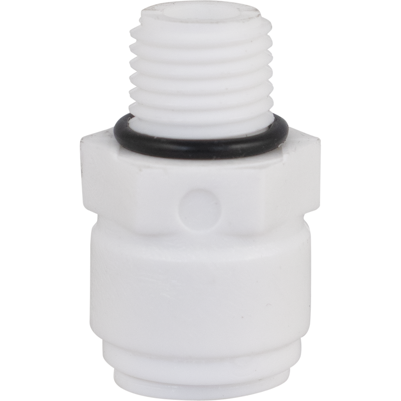 This Duotight fitting with 1/4" male thread is a great option for connecting gas line to regulators and manifolds that have 1/4" FPT. Comes with seated O-ring. Compatible with EVABarrier 9.5 mm OD tubing (D1719).