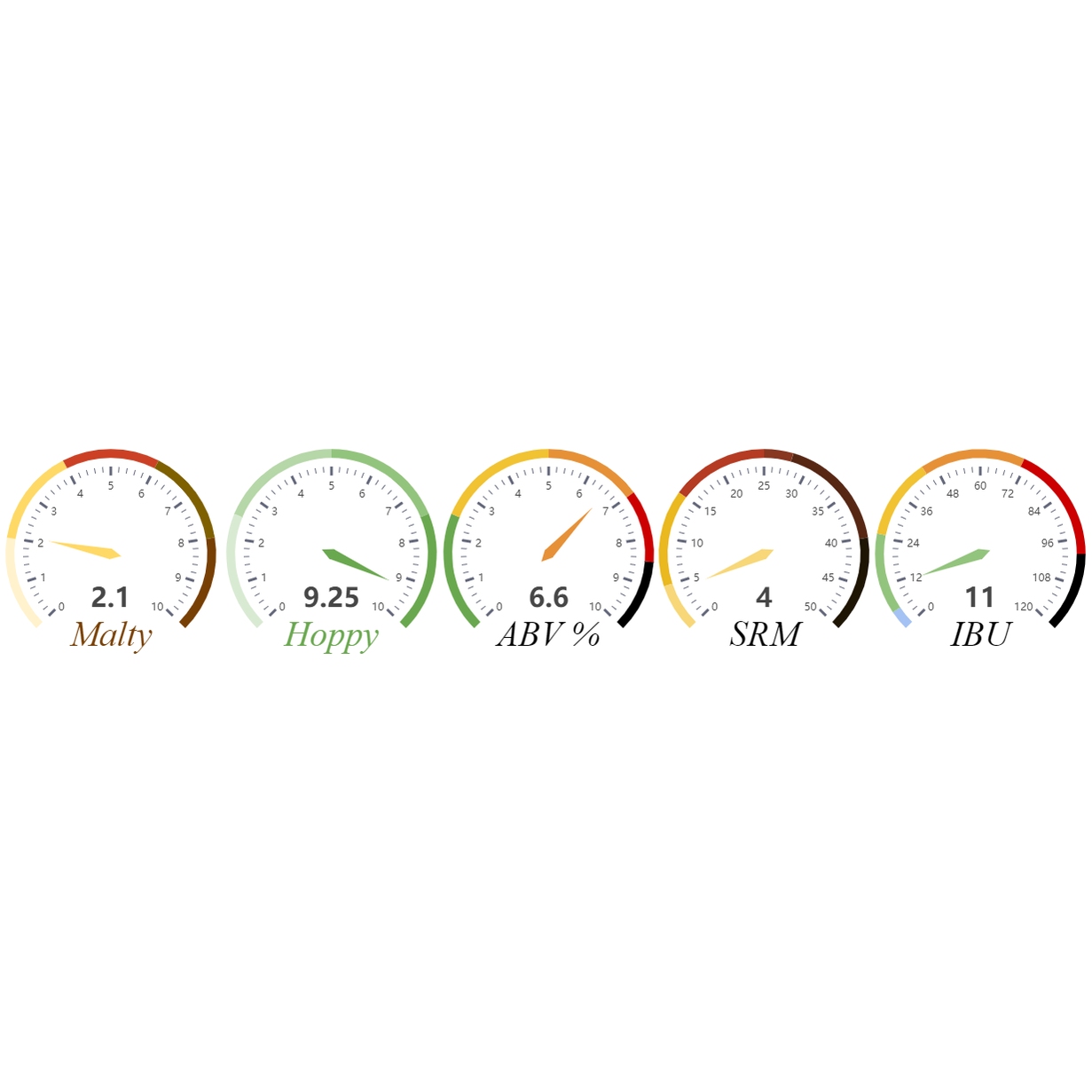 A clean malt profile with very low bitterness and packed with hop aroma from multiple dry hop additions