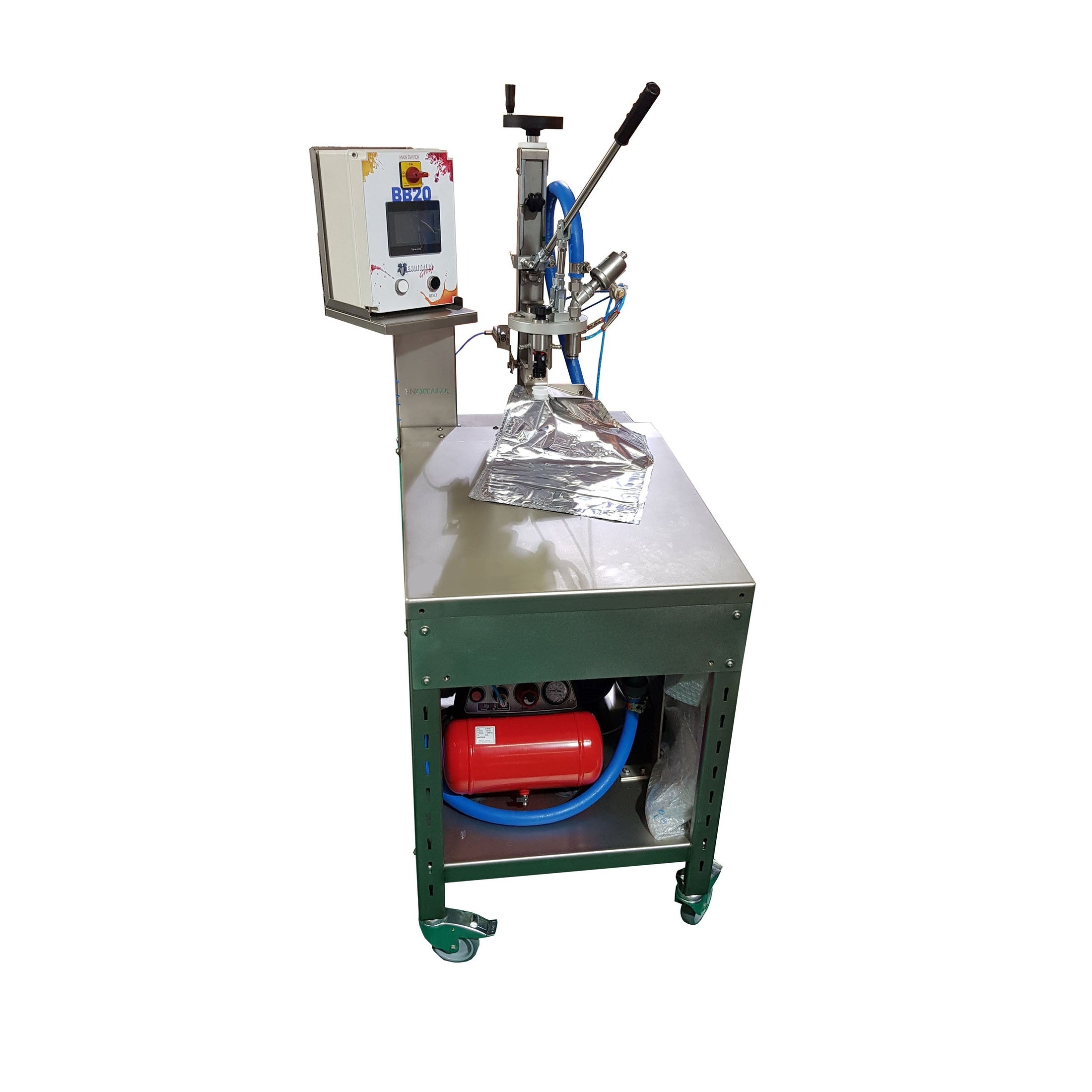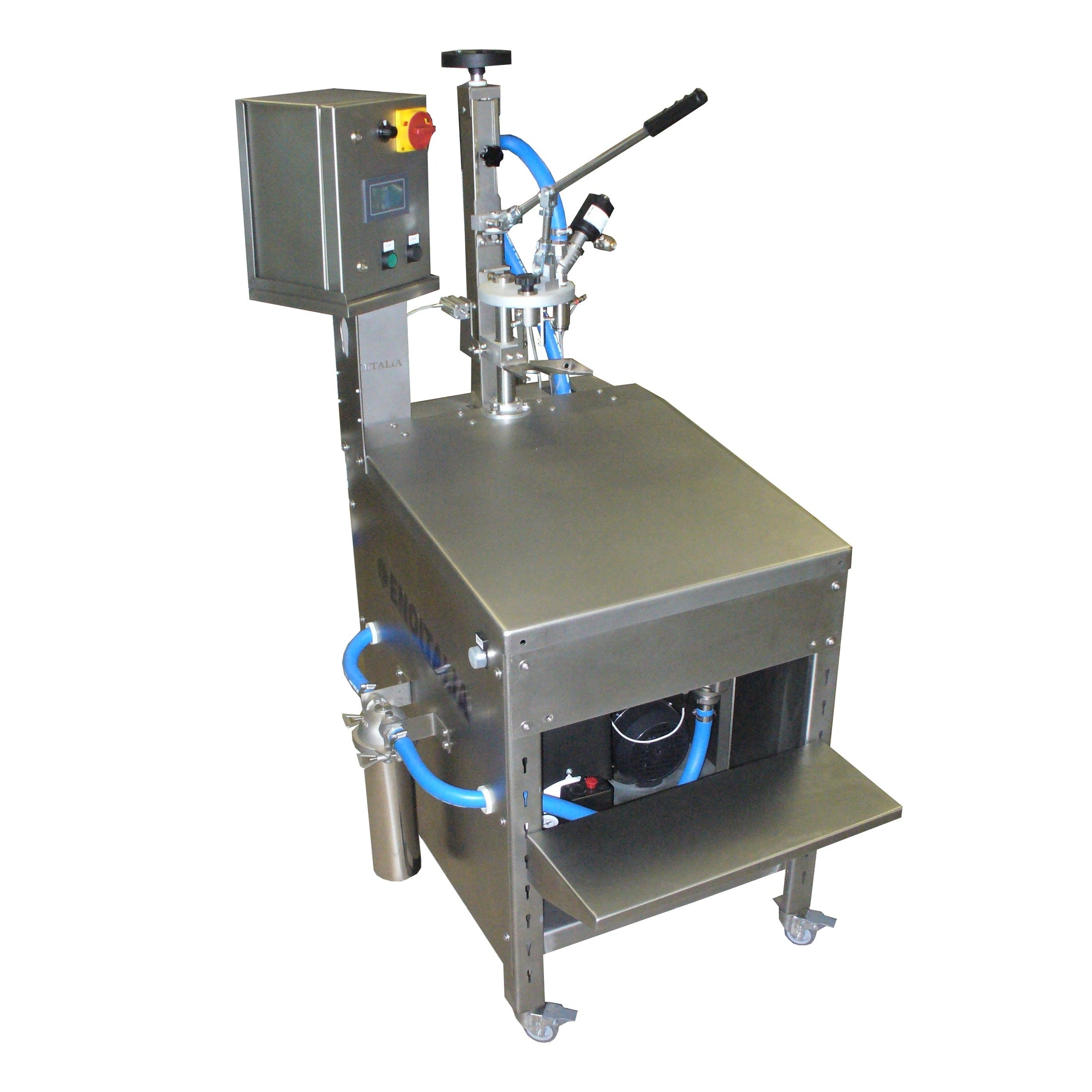 The BB20 is a semi-automatic bag-in-box filler manufactured by Enoitalia in Italy. The beauty of this machine is the simplicity. The BB20 automatically carries out the cycle of vacuuming the bag, filling, and then finally nitrogen flushing. The operator inserts the bag and activates the swing arm pincer tool to remove the valve. After filling the operator again uses the swing arm to quickly reinstall the valve after the bag is filled. The possibility to choose between different types of flow sensors allows the BB20 to be used with liquids of different viscosities, including wine, fruit juices, olive oil and more. Filling can be carried out at room temperature or hot up to 212°F / 100°C. In the case of hot filling, specific accessories are available depending on your set up. A self-priming volumetric pump with rubber impeller is installed as standard. This pump offers a high flow rate, the possibility to prime/draw from any container, an anti-pressure by-pass valve and a total drain valve for emptying the filling circuit.