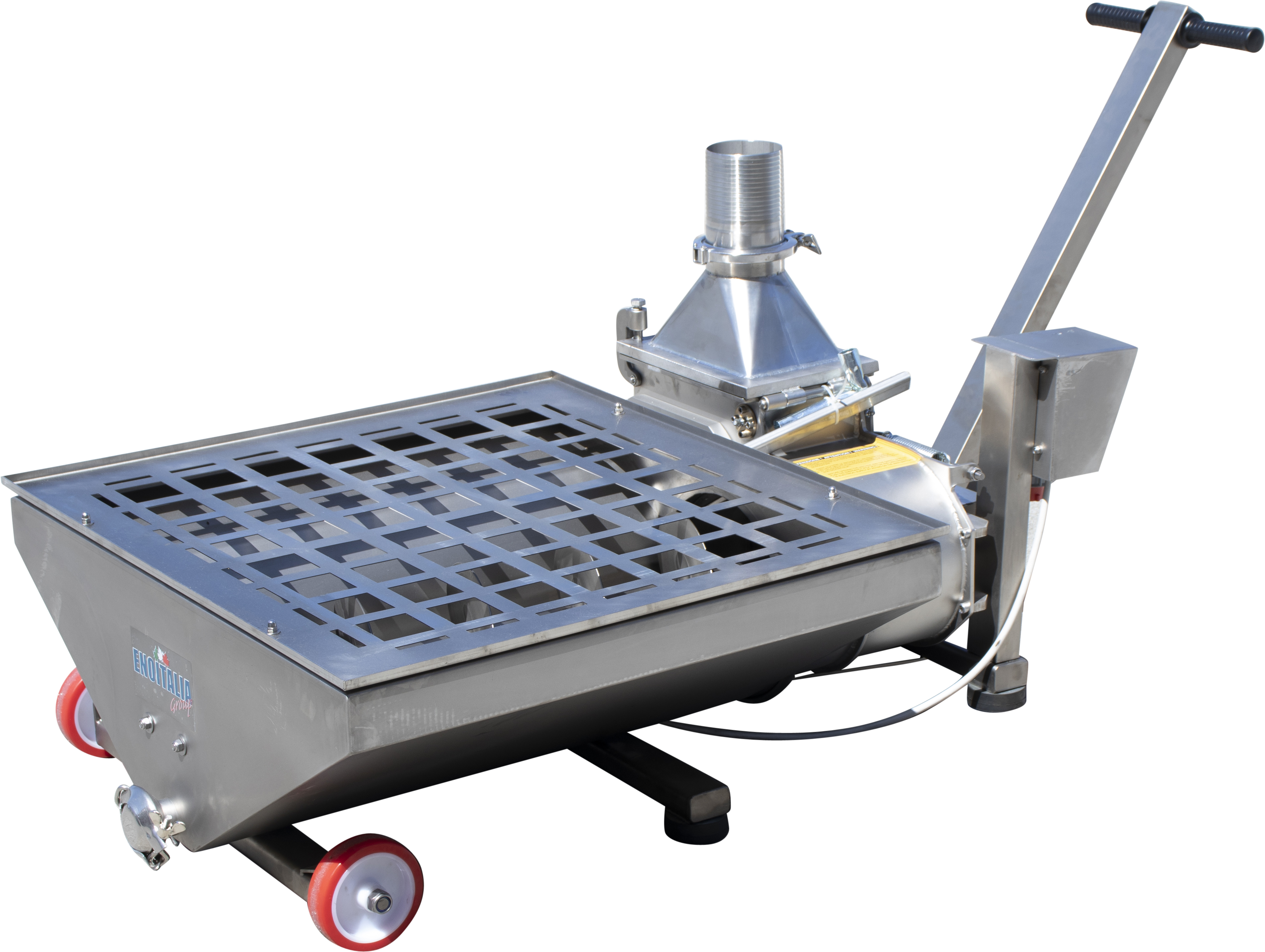 Gamma pumps are heavy duty, elliptical rotor, stainless steel pumps designed to move must from your destemmer to your fermentation tanks or bins. They are often referred to as Roll-in Crush Pad Pumps because they are on wheels and slide directly under your destemmer crusher. While rubber impeller pumps can be made to work for this purpose impeller pumps are not as good in situations where there is very little liquid. Examples would be when you are trying to process whole berries or processing very small berry cabernet sauvignon. Gamma pumps are also softer on the fruit than an impeller pump.