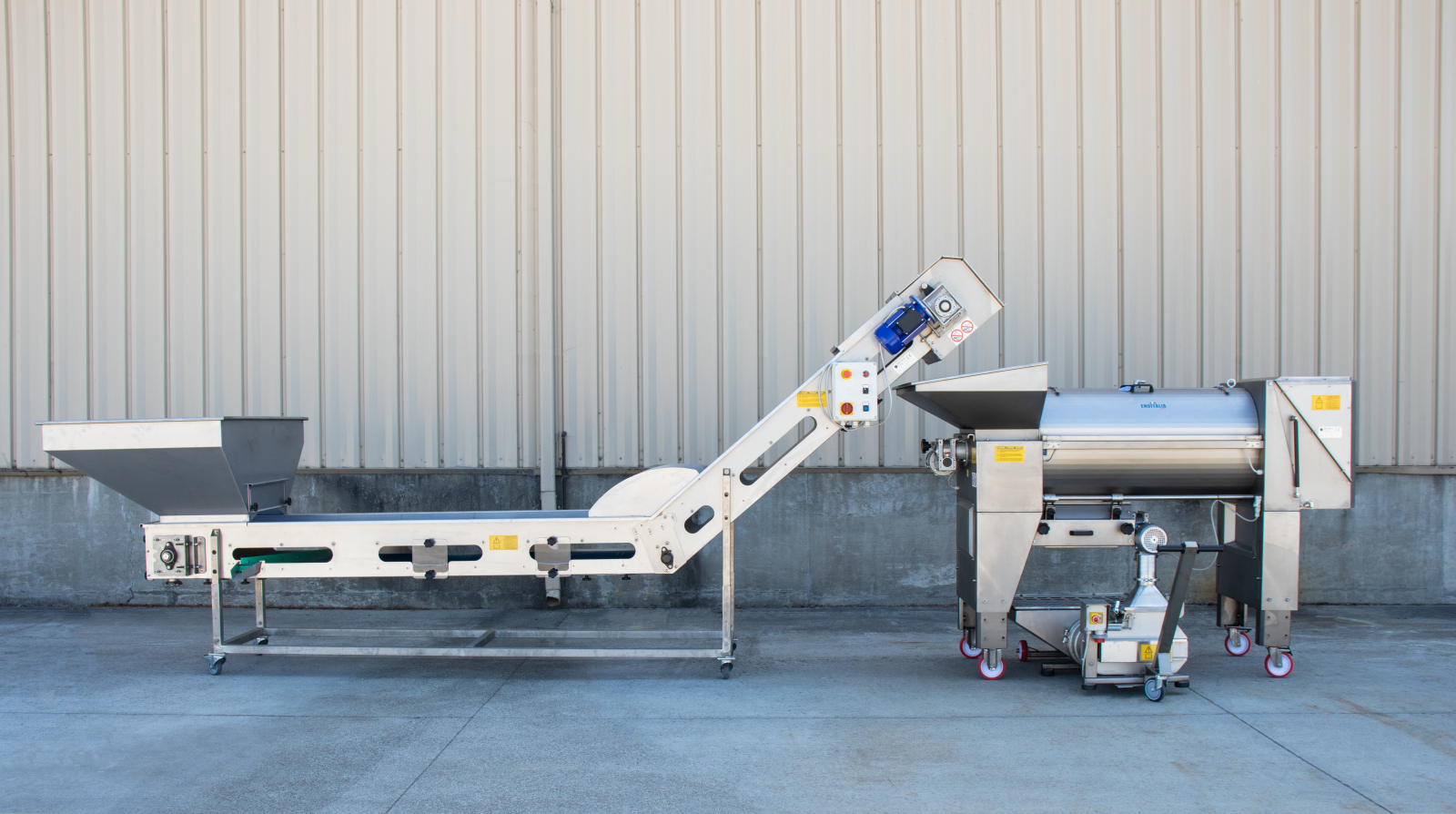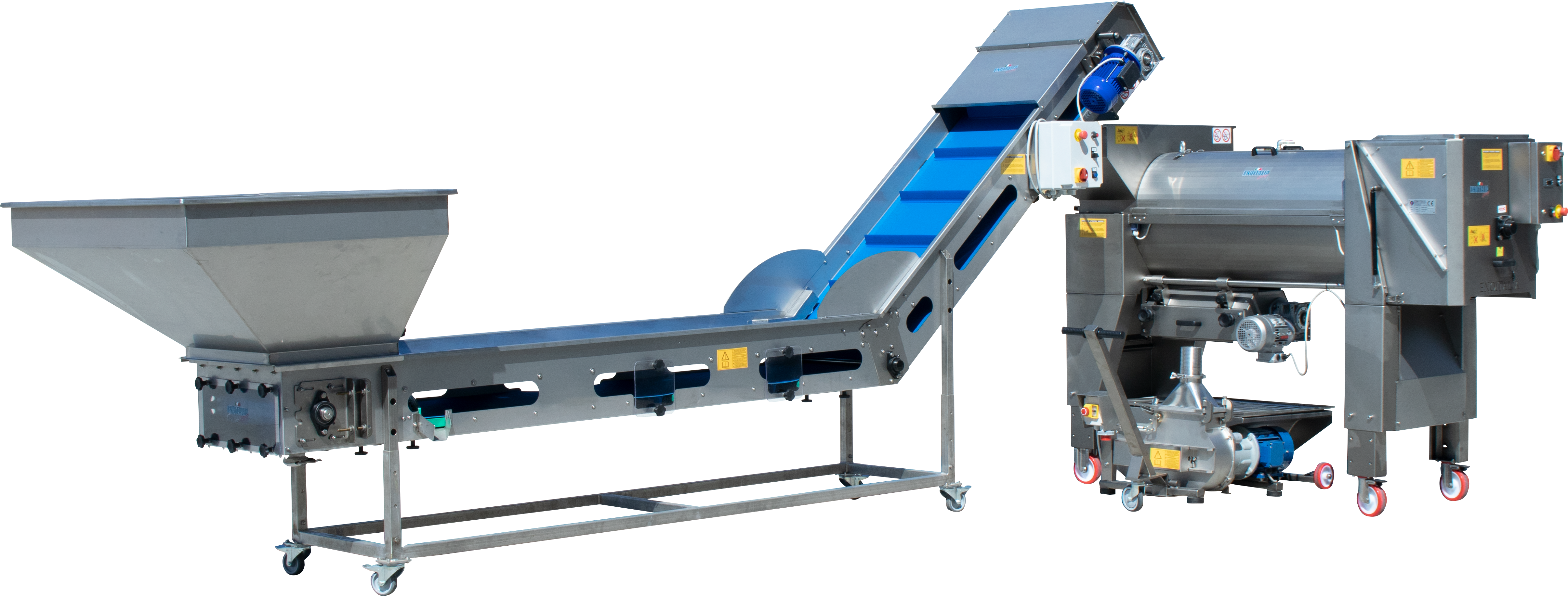 EnoItalia's top of the line Centrifugal Destemmer Crusher gives you the highest level of control when processing your grapes. It comes with three independent motors allowing you to dial in the perfect speed for your grapes. The loading hopper features mechanically varied motor that allows you to adjust the speed the grapes are being fed into the destemming chamber. The destemming basket and shaft are controlled by frequency drive which allows for the use of potentiometer to electrically control the speed. The rubber rollers are driven by an independant set speed motor and can be adjusted to change the gap, or even removed, if you desire destemmed whole grapes. Independant control of each process allows you to find the balance between speed and quality and helps the machine from being overloaded at any one of the stages.