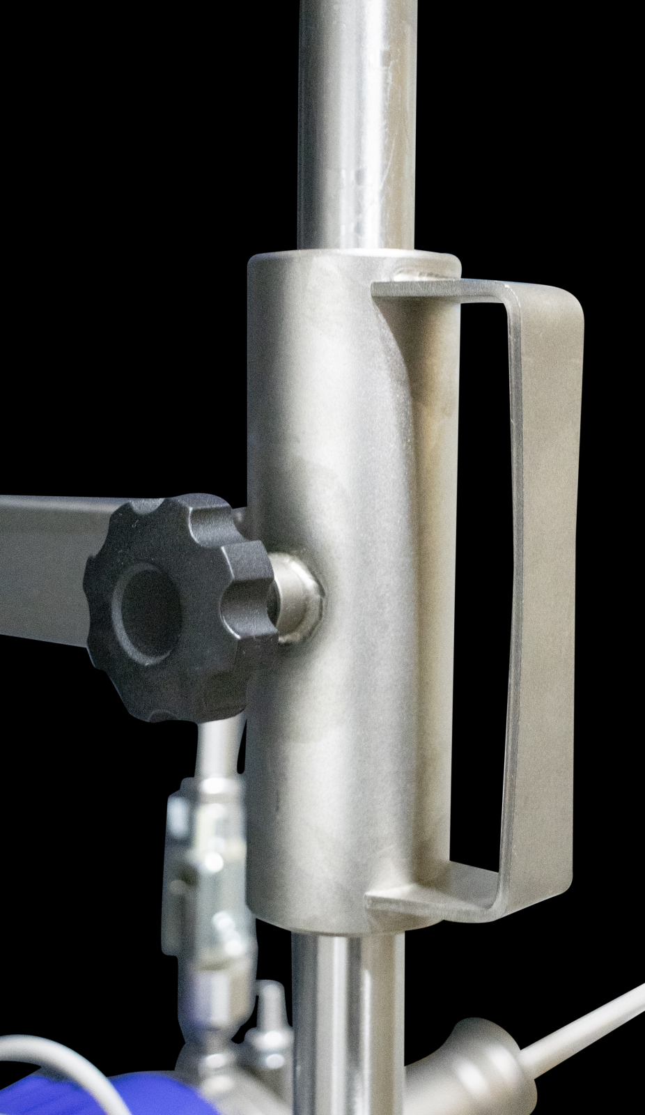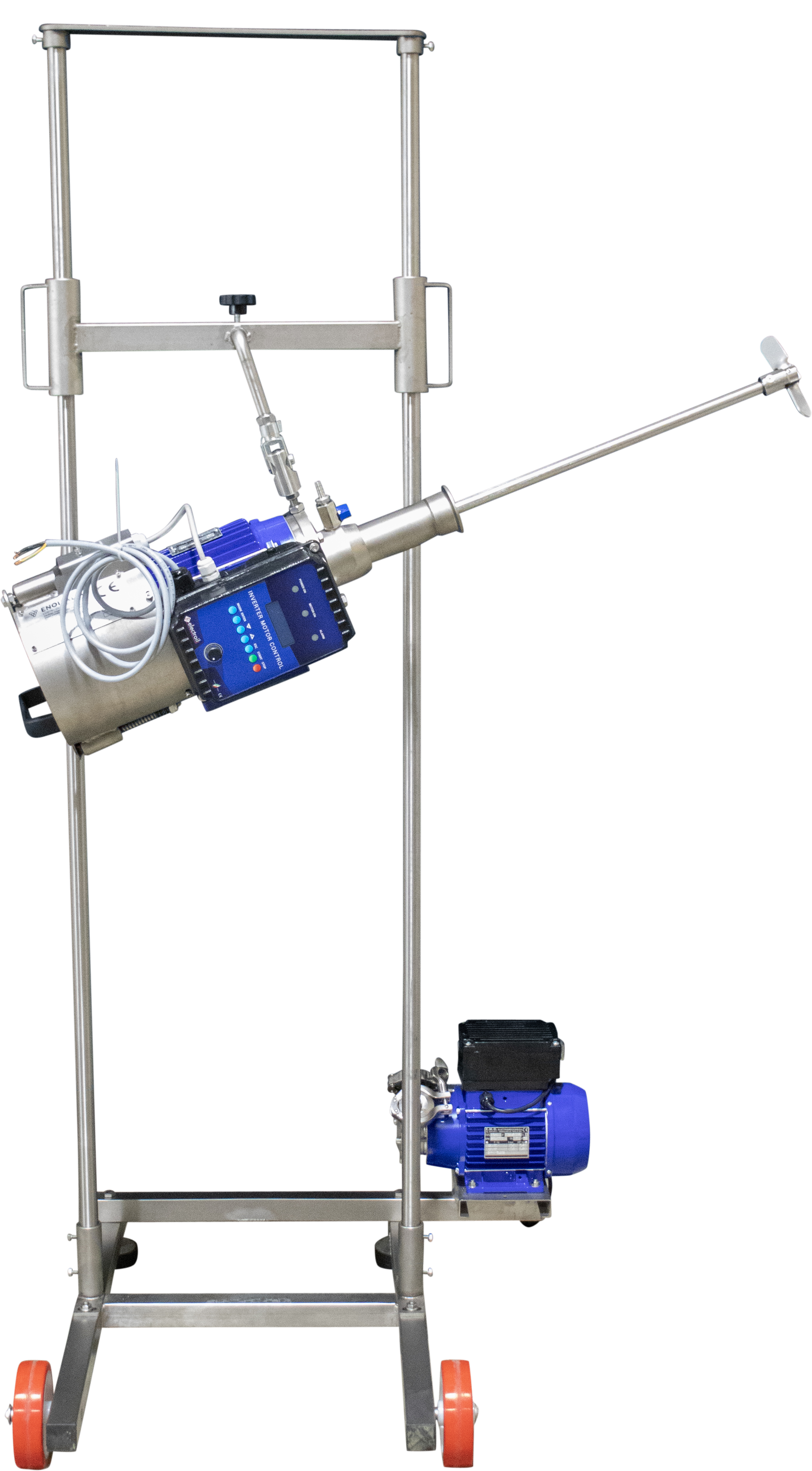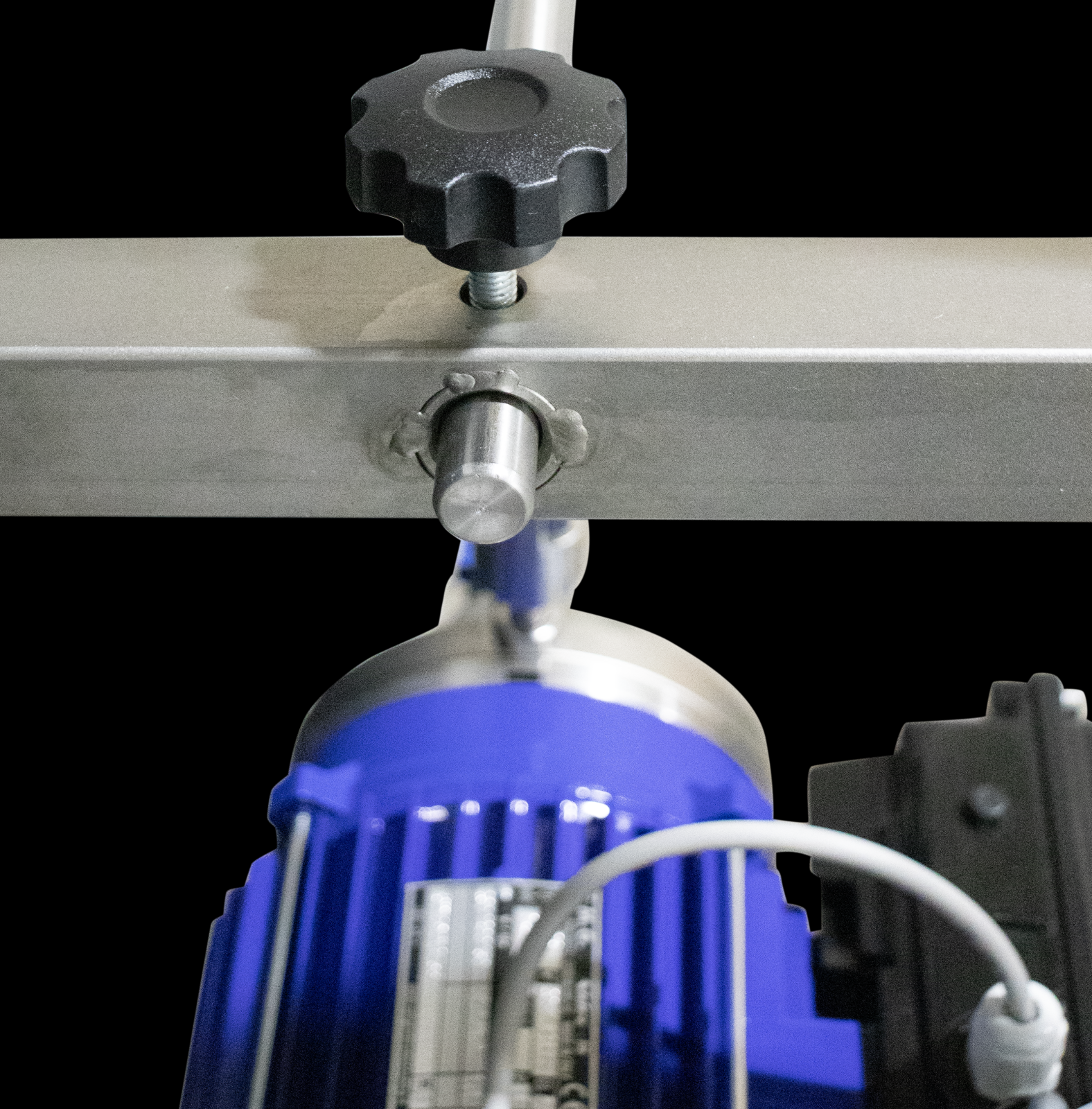 Gently mix yeast, sulphite, and additives into your wine with this variable speed mixer. The stainless cart allows you to move the mixer up and down to the height of your tank fitting. Also adjust the angle of the mixer to accomodate inclined, reinforced mixing ports, like on our Speidel Stainless tanks.