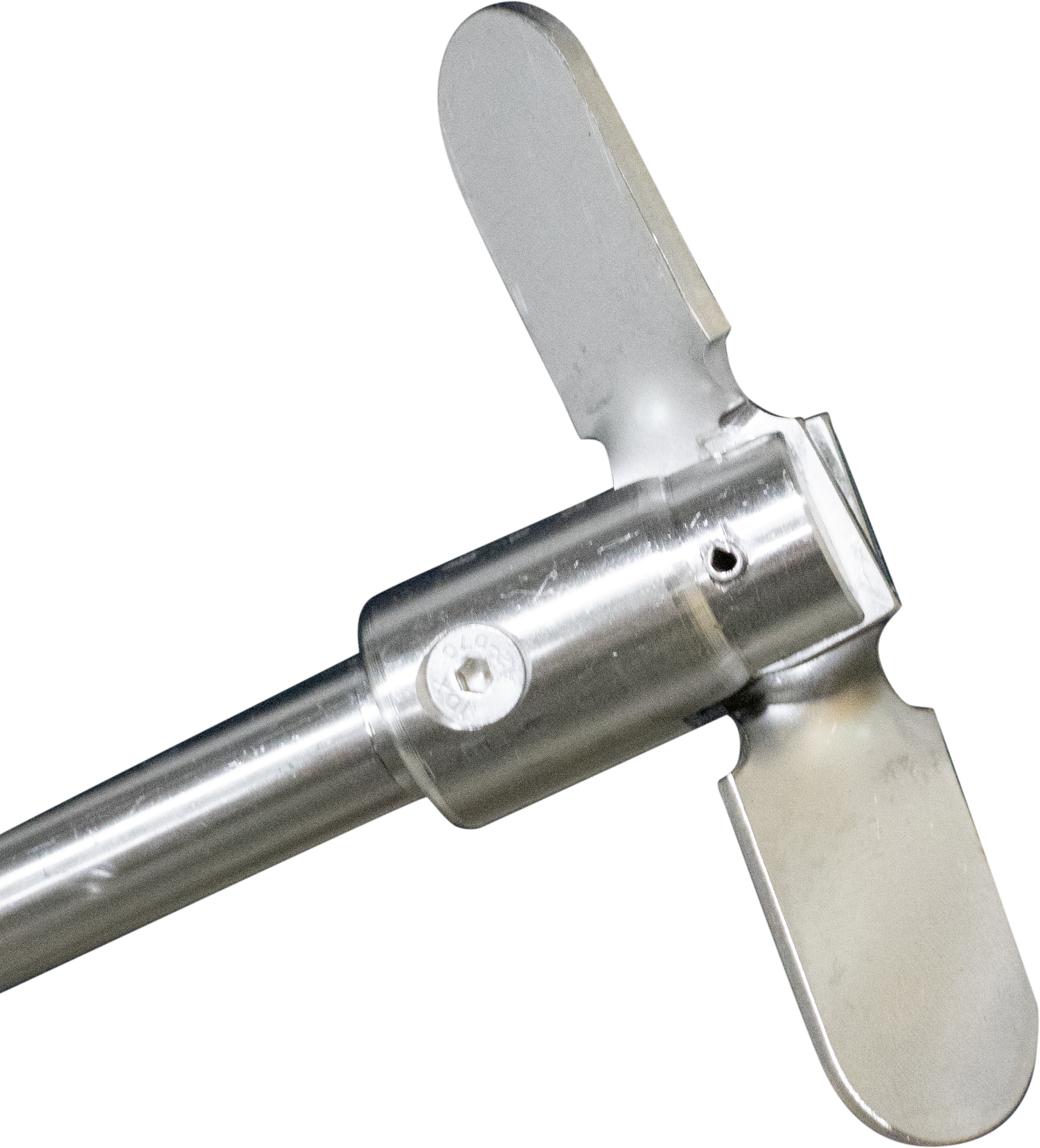 Mixing ports enter through full port 2" TC ball valves to allow for an easily installation and disassembly. Position and attach the mixer to your 2" TC ball valve. Open the valve and slide in the adjustable mixing shaft, lock the shaft in position, and turn on. Adjust the speed to accomodate your desired level of agitation. To remove unlock shaft, slide out, turn off TC ball valve, and then disconnect mixer from TC ball valve.