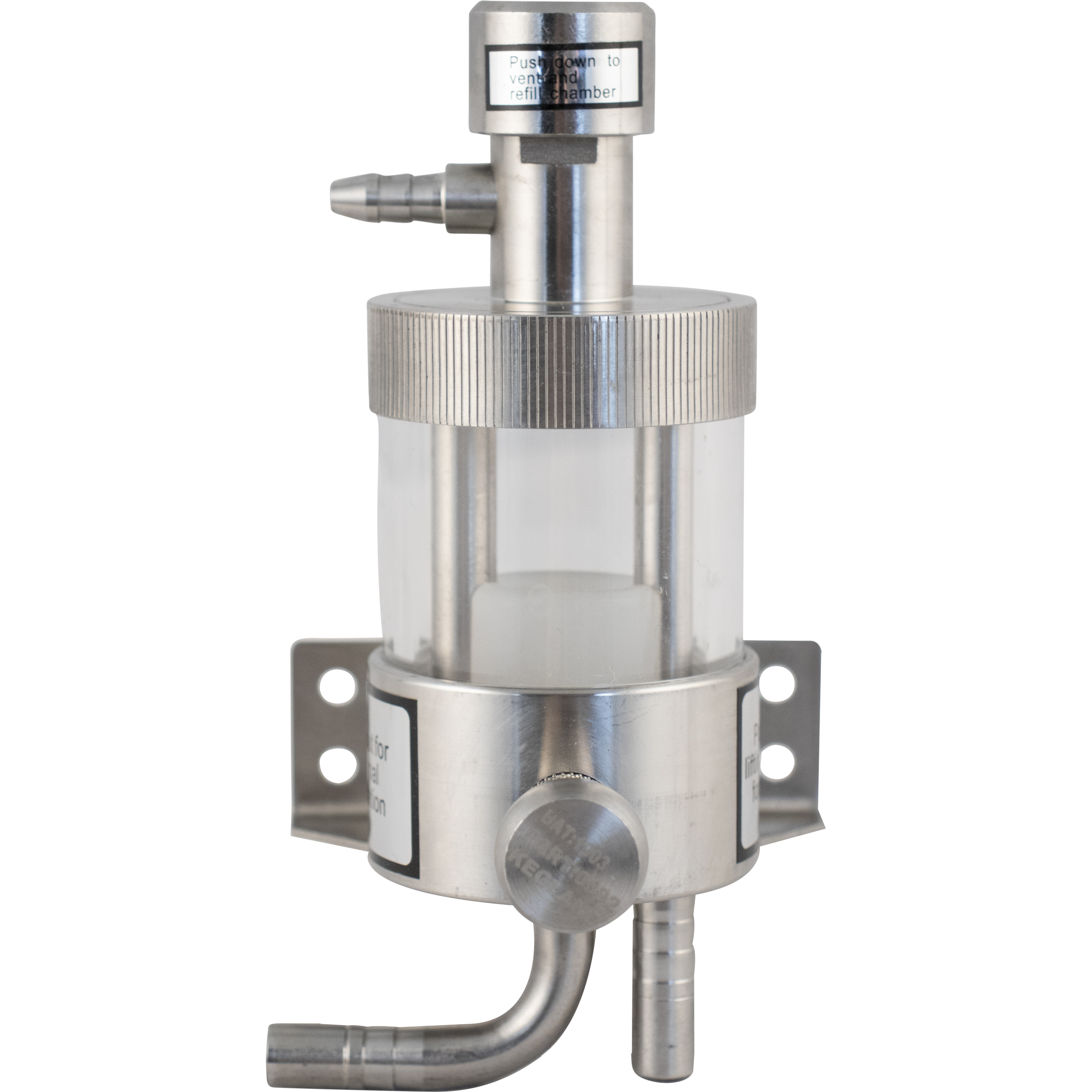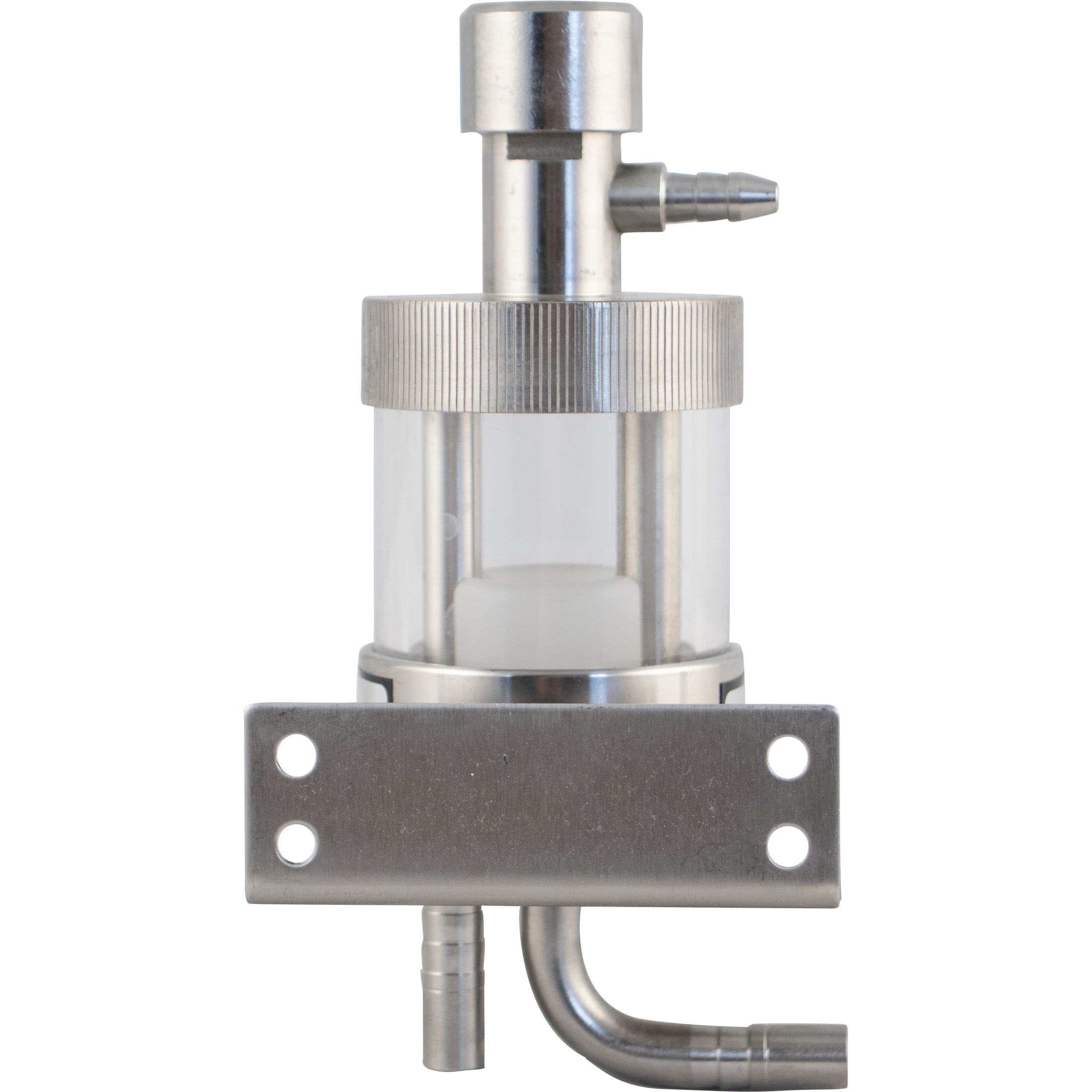 The FOB comes with 3/8" Duotight compatible barbs at the inlet and outlet, allowing you to easily hook up EVABarrier tubing with either a 9.5 mm joiner or 9.5 mm to 8 mm reducer (DUO113 / DUO105). If not using EVABarrier, simply clamp the line directly onto the barb.