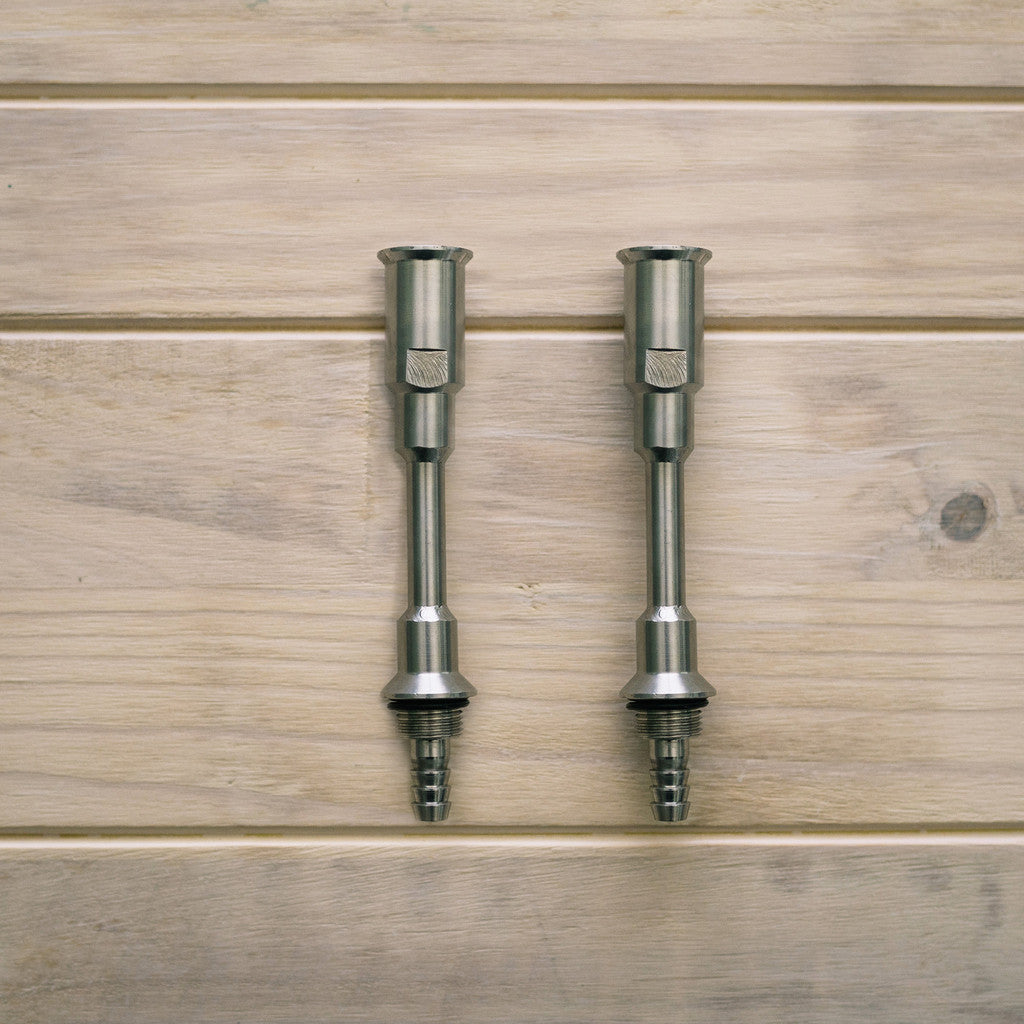 These chiller coil extensions extend the length of the Ss Brewtech FTSs chiller coil for Brew Bucket and 7 gallon Chronical fermenters. Very useful if you brew partial batches and/or there is a cool ambient temperature forcing you to mostly heat your fermenter. Mounts under the lid to drop the coils further down. Made from 304 stainless steel and leak tested.