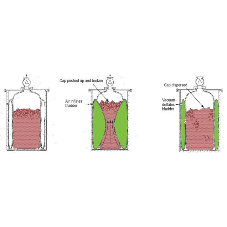 When a punch is desired, the controller inflates the bladders. This action squeezes the fermentation bag forcing the wine up through the cap. After a few minutes the bladder is deflated and fragments of the cap fall back into the wine. The action is repeated periodically and ensures that the cap is dispersed and kept moist. Unattended punchdown. Set schedule on smart phone. Perfect punching based on our patented air bladder technology. No getting up at 2am or working weekends. Built-in WiFi and free monitoring/control app.