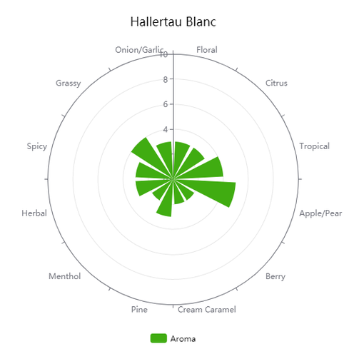 German Hallertau Blanc is a daughter of Cascade, bred specifically to fit the needs of American craft beer styles. It is mostly an aroma hop with moderate to strong notes of pineapple, white grape, fresh lemongrass stalk, and passionfruit characteristics. A great aroma hop to use with IPA's, Belgian ales, wheat beers, and Brett fermentations.