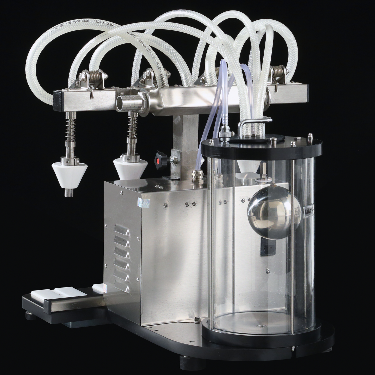 Stainless steel base, frame, and filling nozzles