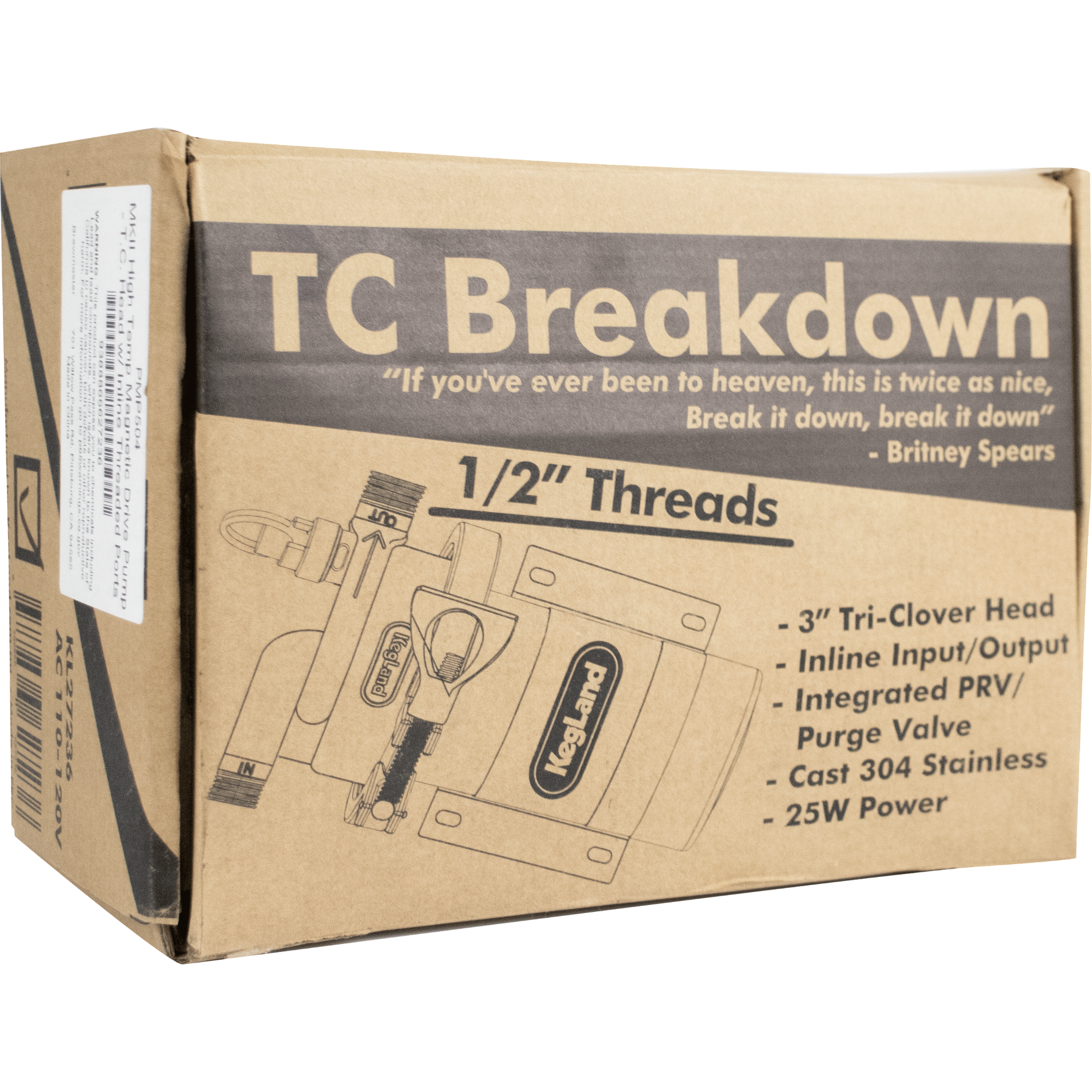The T.C. pump head can be removed quickly and easily using the 3" tri-clamp. This means no drivers or power drills are needed to back out the six Phillips head screws that mount the pump head on the standard version of the MKII. Whip the head off in a flash to clear out spent grain, hop material, or clear a blockage. Attaching the pump head with a tri-clamp also allows the head to be rotated at any angle in a full 360-degrees. This makes it easy to configure the plumbing to your unique brewery setup.