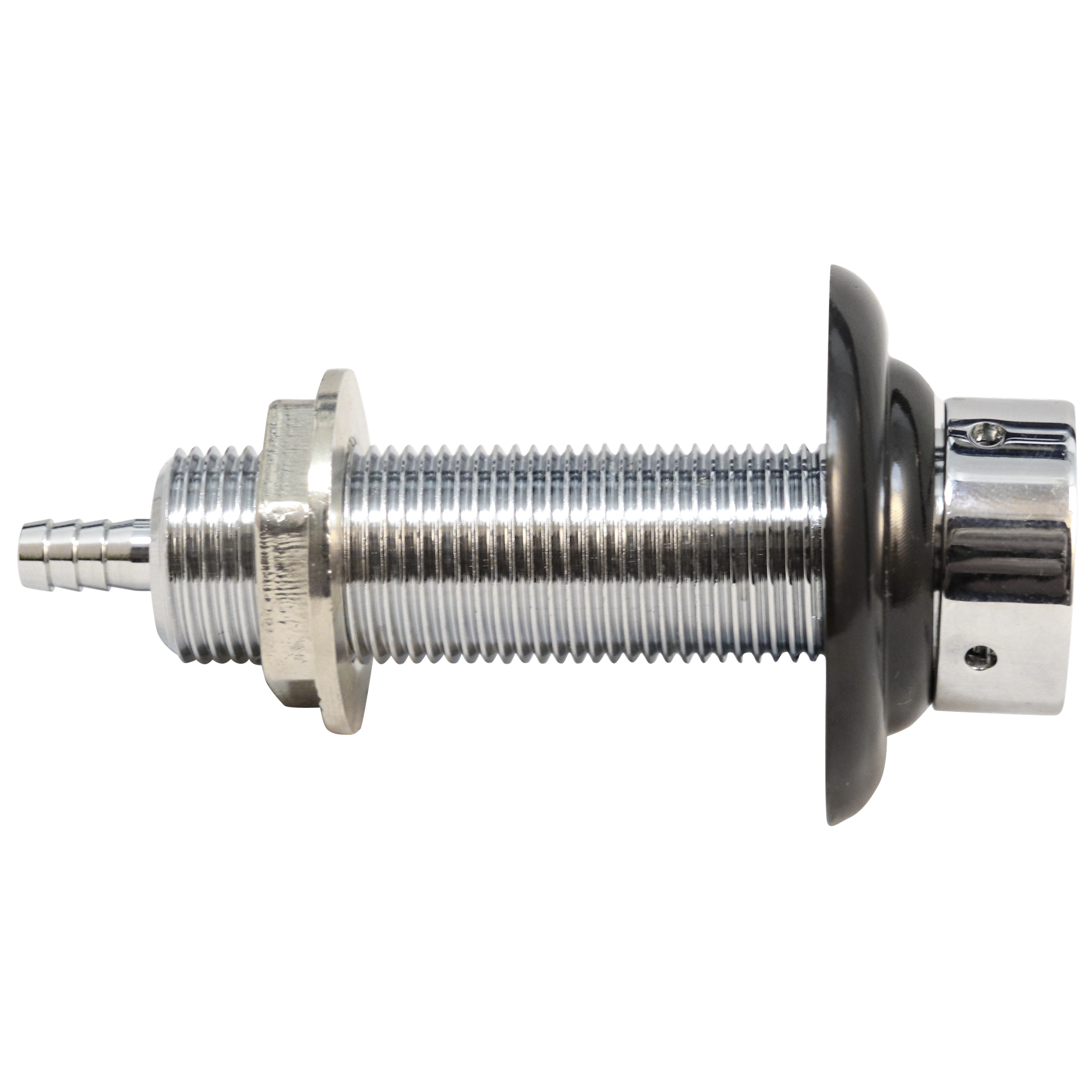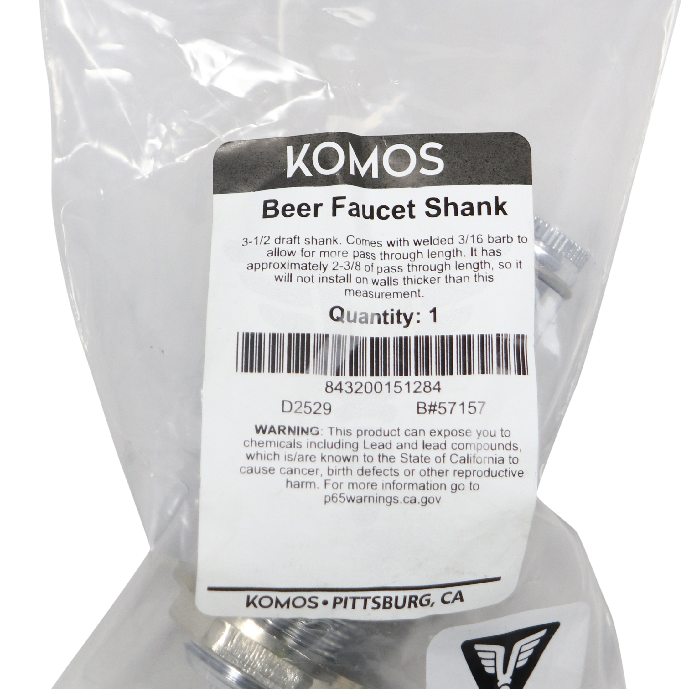 Chrome plated brass shank comes with a back nut, plastic collar, and a welded 3/16" nipple. This beer shank is a popular choice for building your own custom draft system. Typically installed in the door of a refrigerator or the wooden collar of a converted chest freezer.