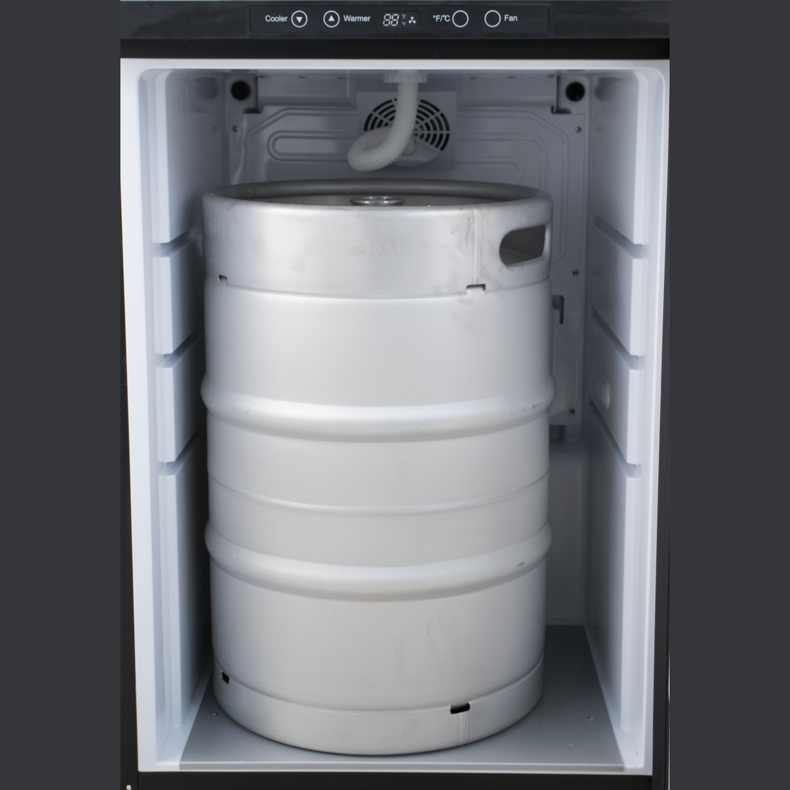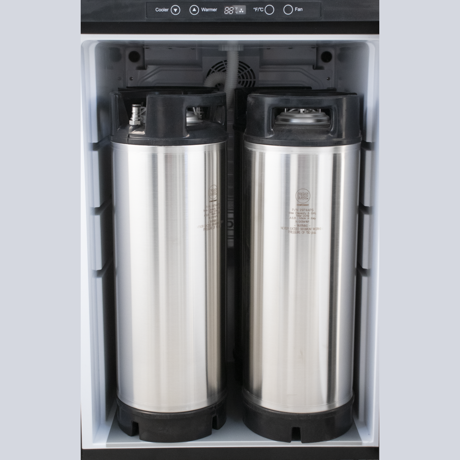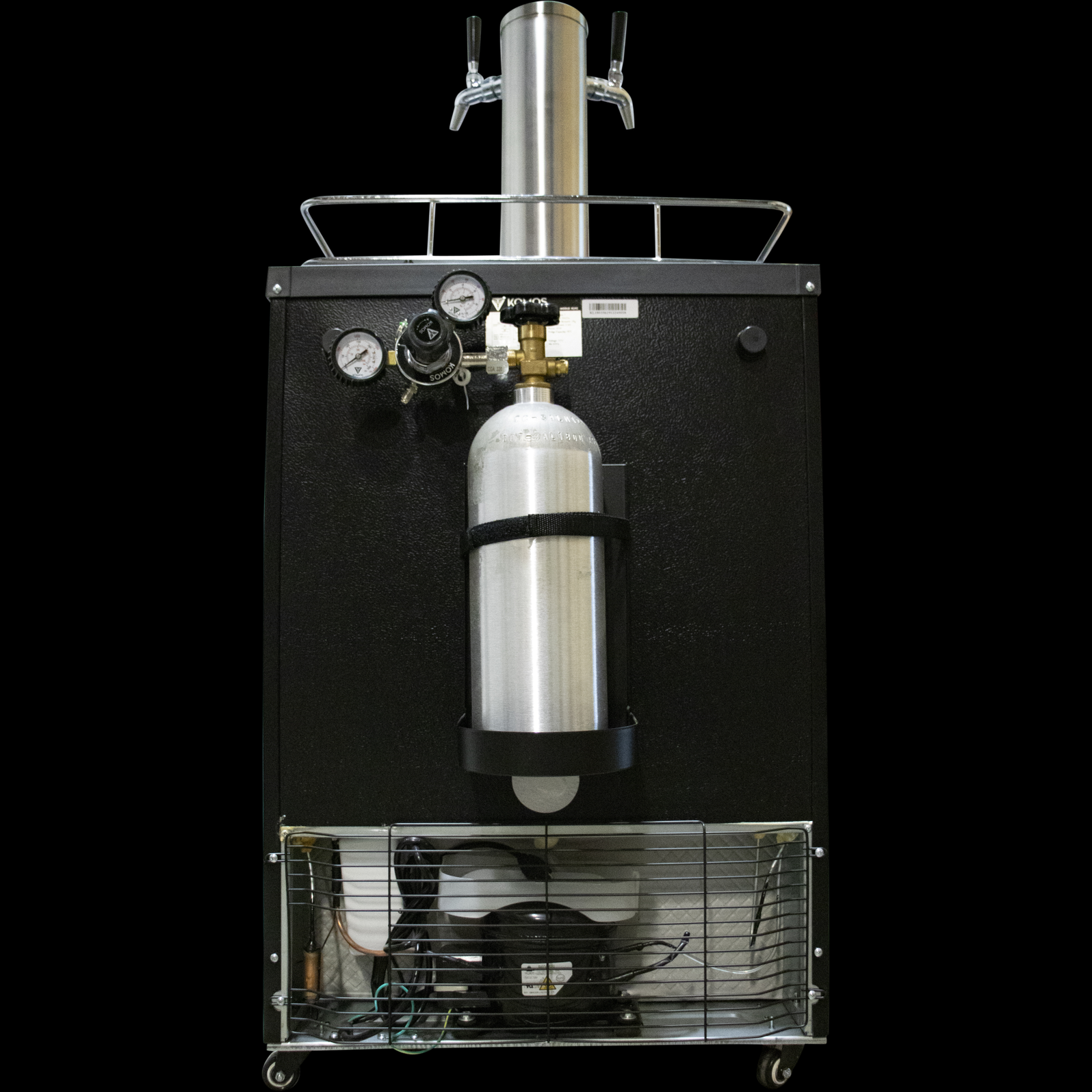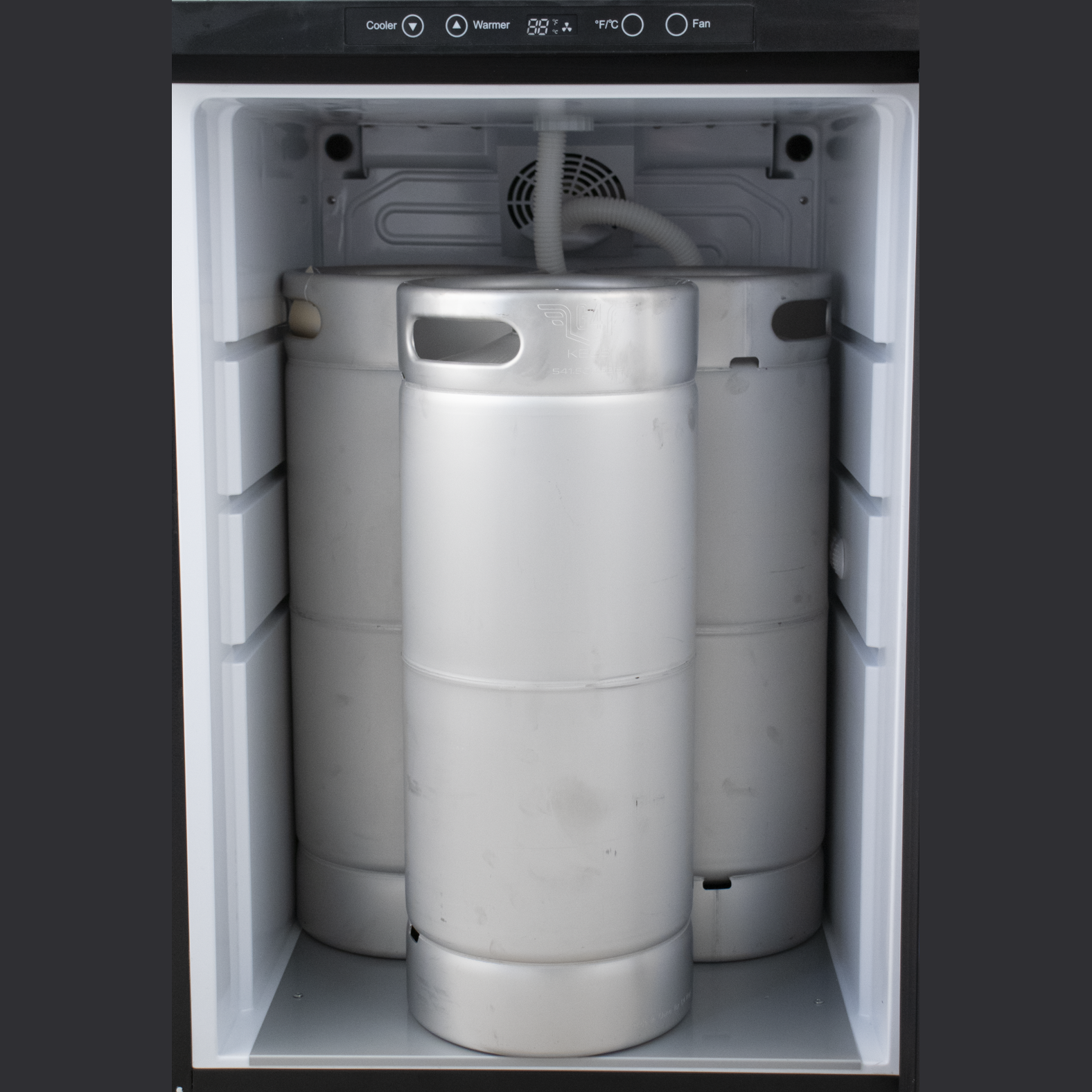 The KOMOS Kegerator features upgraded components for faster chilling and more efficient operation. It also has a redesigned interior that fits up to four 5-gallon kegs at one time. This unit represents an amazing value in home draft dispensing. It features a digital controller, stainless steel door, aluminum floor, rolling casters, robust KOMOS CO2 regulator, and more. This version does not include a tower kit. Great as a fermenation refrigerator or as a unit that can be built-in when adequate ventilation is an option. Approximately 4" of space on each side of the kegerator is required to allow the unit enough air. The tower is then mounted to the countertop and often a pvc collar or foam insulation is placed between the kegerator and the counter. This can also be done with any of our regular kegerators by removing the tower from the unit and mounting it on the counter.