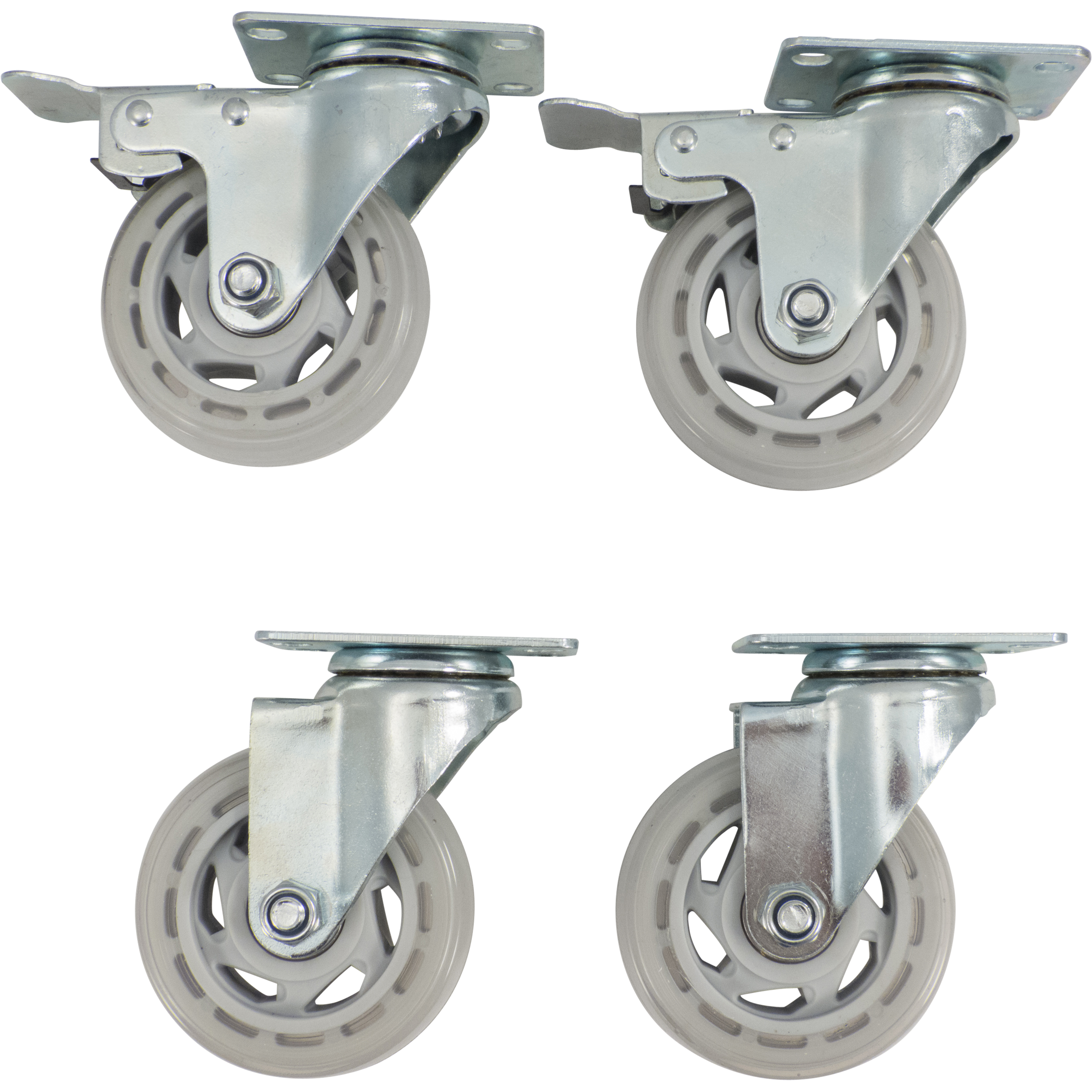 Upgrade the wheels of your Komos kegerator to these heavy duty 100mm wheels. Each wheel is rated up to 220 lbs and made with steel bearings. Includes 2 locking and 4 non-locking wheels.