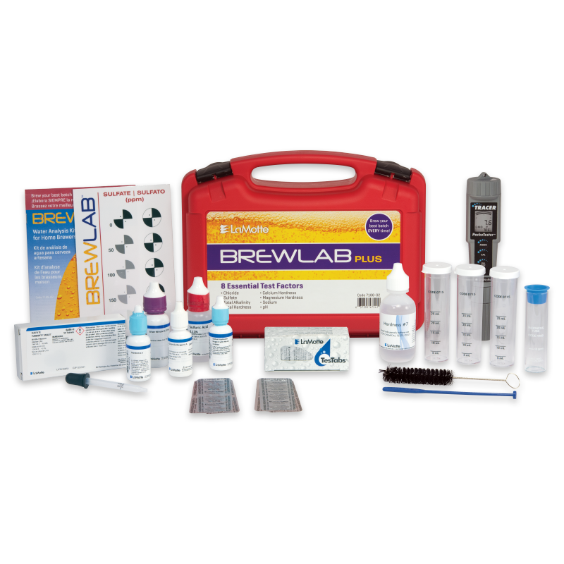 The BrewLab Plus® water test kit, model 7188-02, for home brewers quantifies 8 important water test factors. Includes everything in BrewLab Basic kit plus a high quality digital pH meter for monitoring batches from start to finish. Experts agree water conditions affect your final product, so take the mystery out of making great beer.
