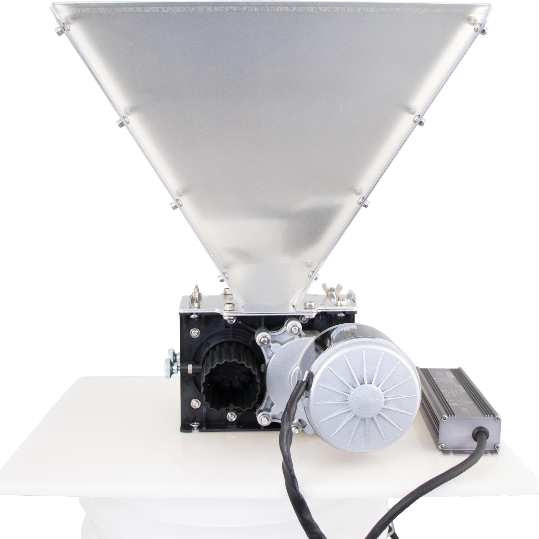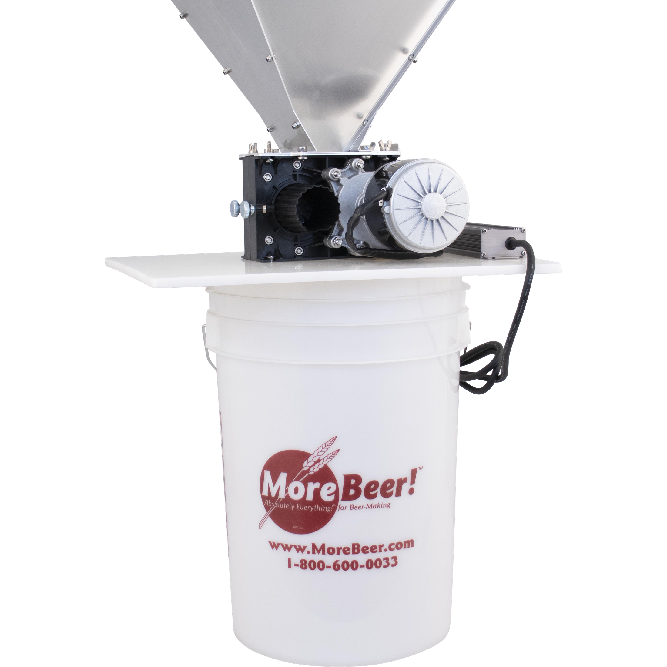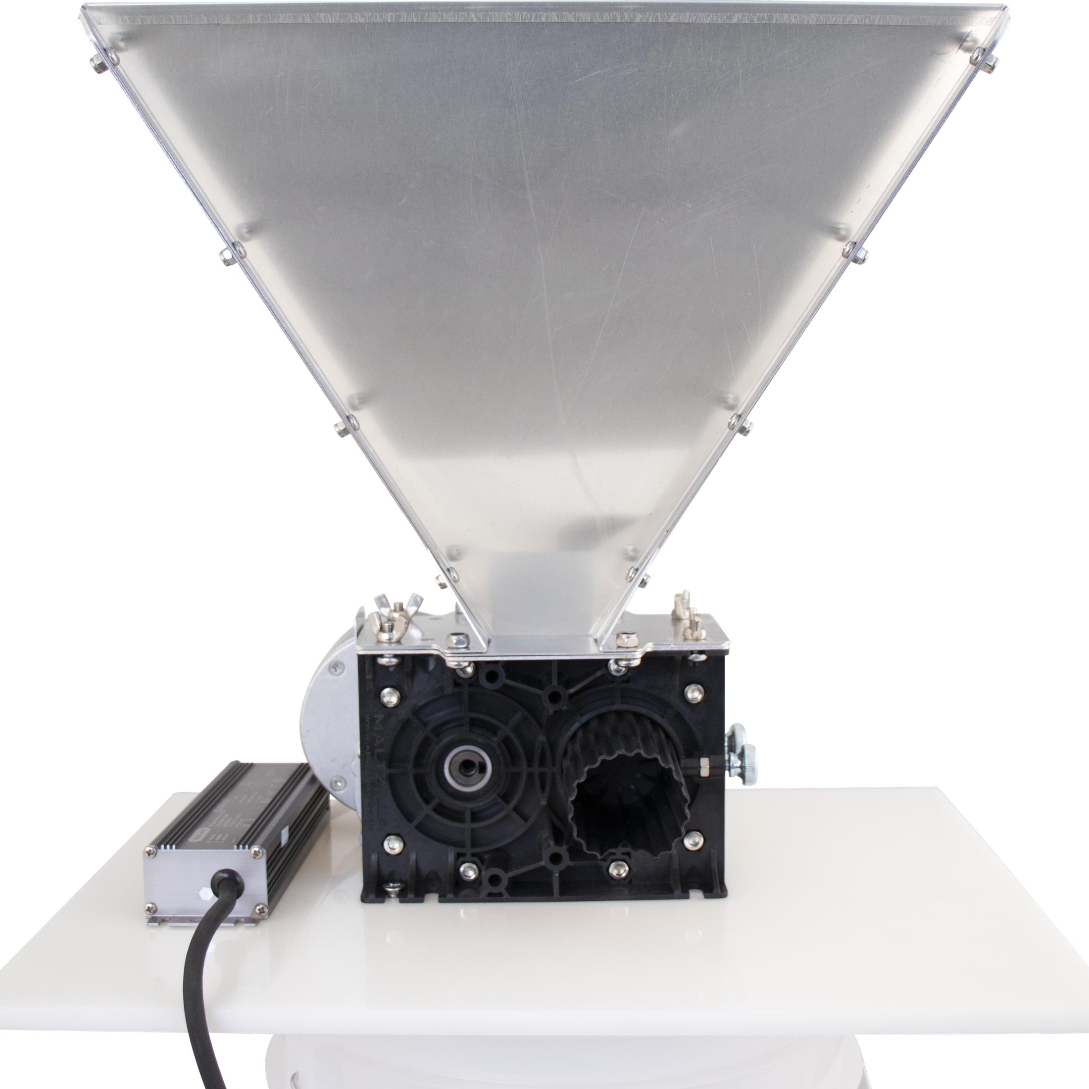 Everything you need to get right down to business with the MaltZilla Motorized Grain Mill! This complete kit includes the MaltZilla Grian Mill, Aluminum Hopper, PPE Base Board, and 110V Power Supply.