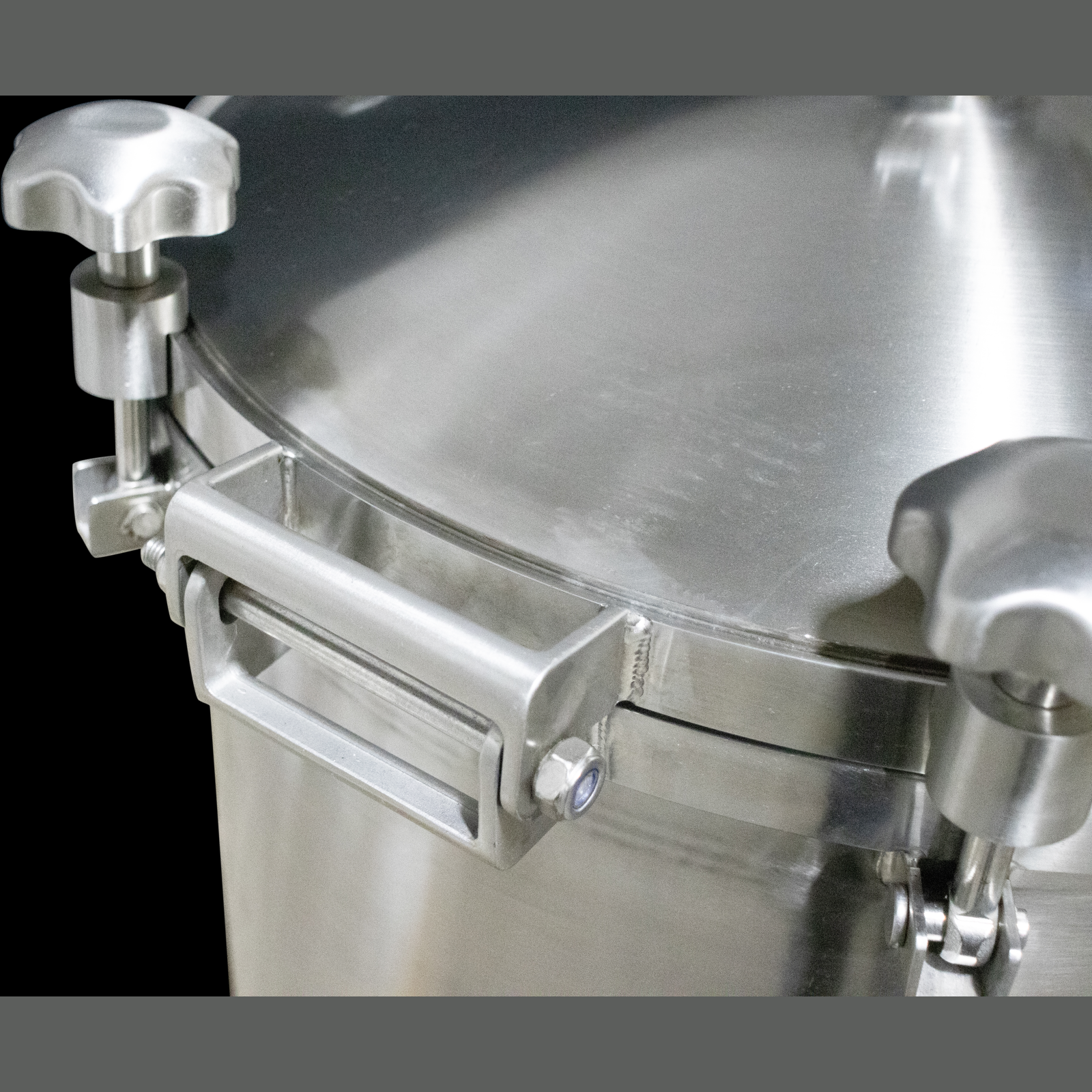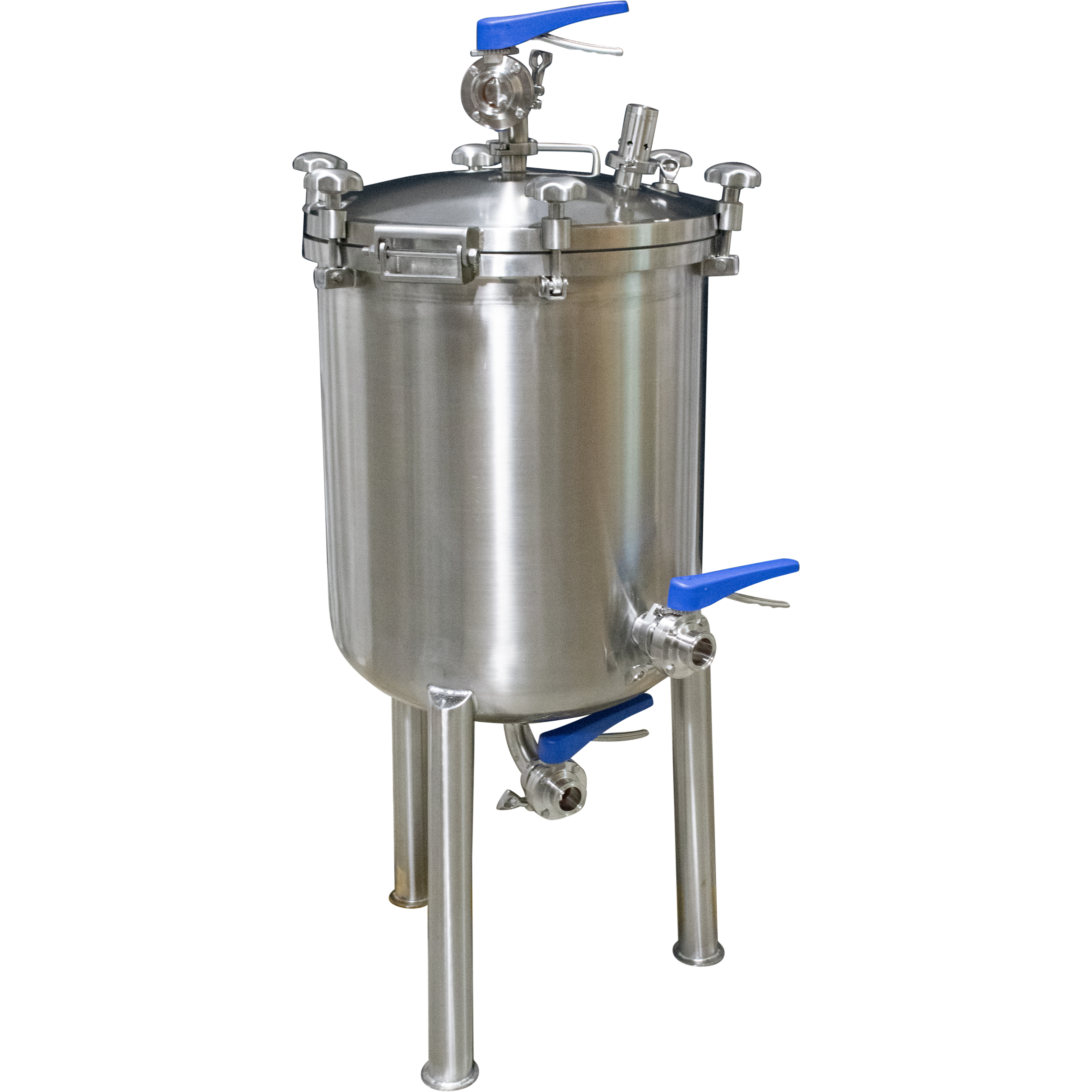 Infusing hops or fruit has never been easier. This 100L tank has a large basket to hold whole hops, pellet hops, fruit or anything else you need to infuse into your beer. There is a side outlet port above the bottom dump so any sediment is separated. The basket is made from perforated plate with a fine mesh screen. The basket measures 15 Ø x 17.5 tall and holds 13.4 gallons (50L).