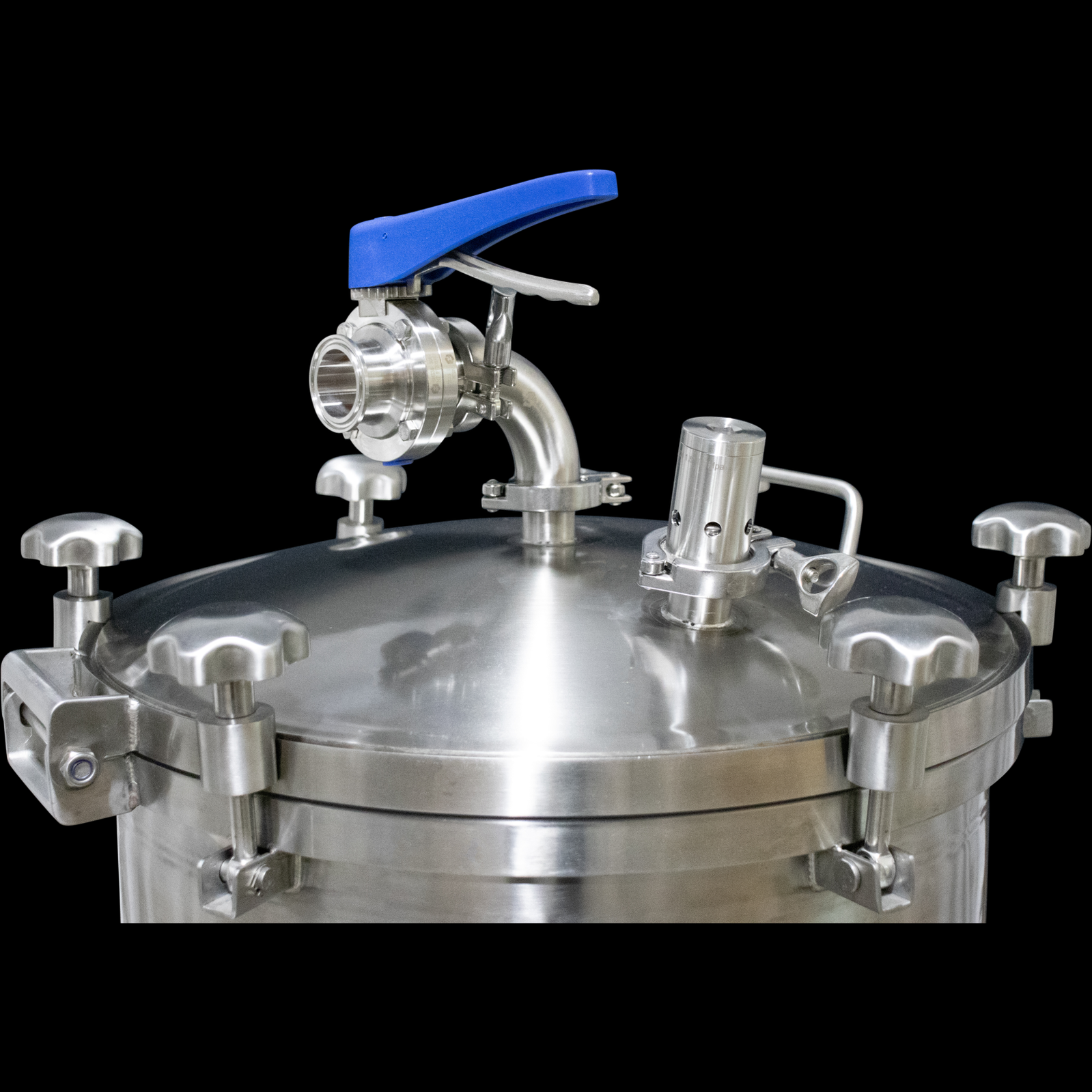 Please Note: The Hop Back Tank now comes with pull handle butterfly valves rather than the blue plastic trigger handle valves show in the photos.