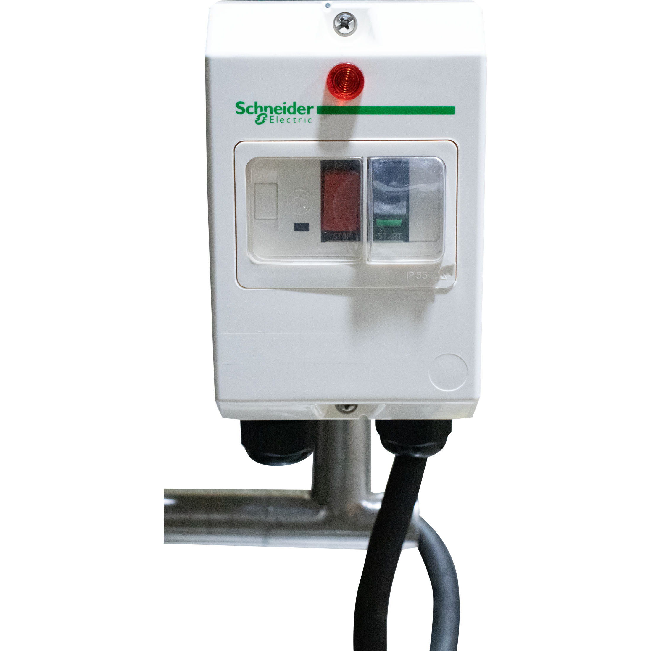 Please Note: The unit will arrive bare without a power cord, plug, or controls to power the motor on or off. You will need an electrician to wire the appropriate power cord and shutoff switch to the motor.