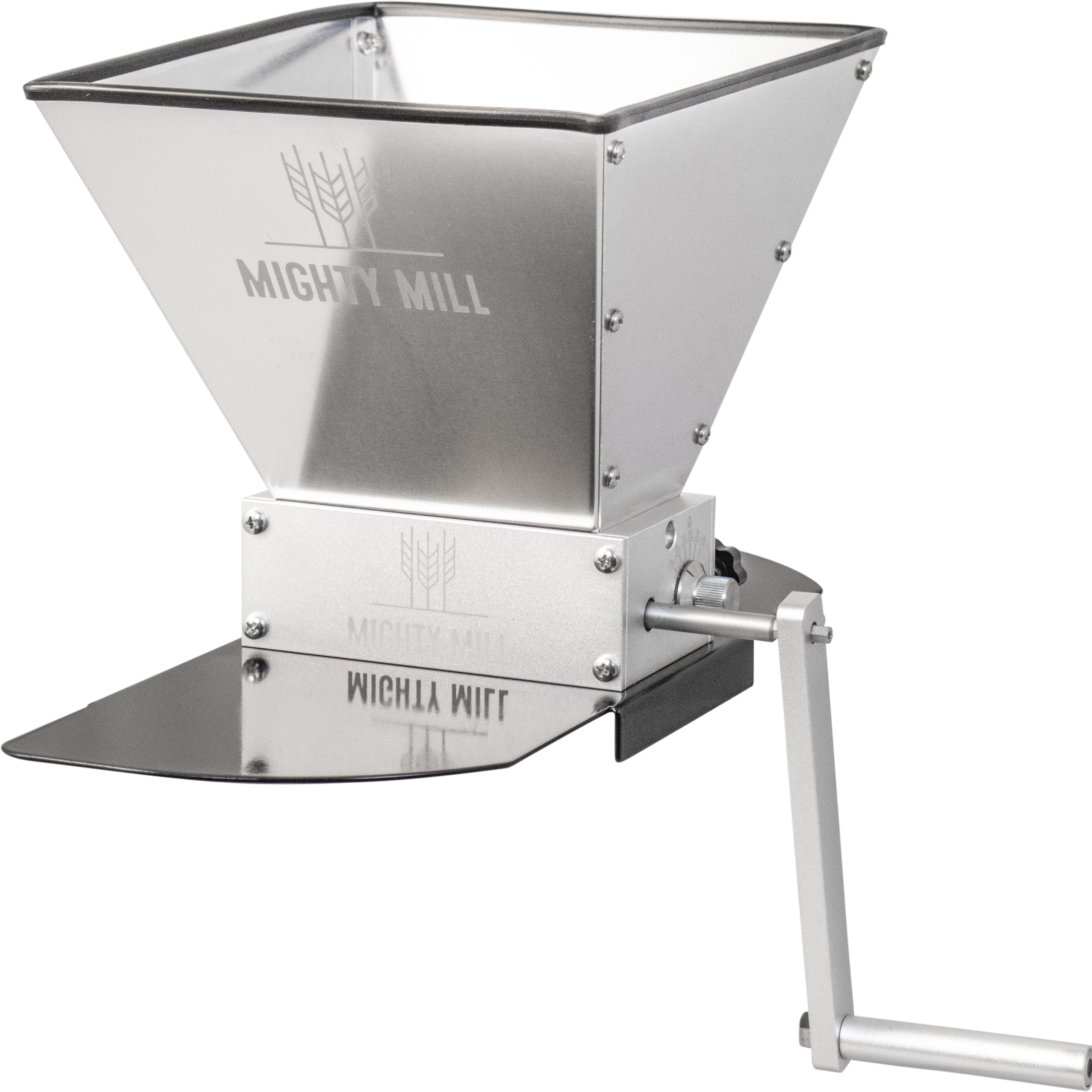 Mighty Mill 2 Roller Grain Mill | Stainless Steel Knurled Rollers | Adjustable Gap Setting | 7 lb Hopper Capacity | Metal Base Included