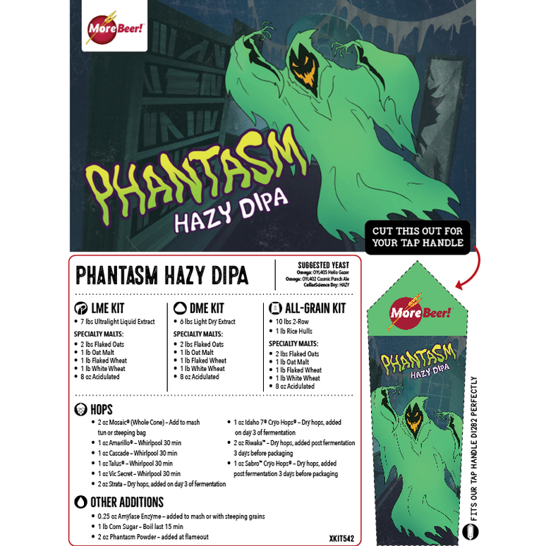 If you're hearing ghostly tales whispered around your local homebrew shop, there's no need to pile your brew crew into the hippy van—this one is no mystery. Phantasm Powder has been causing quite a stir on the craft beer scene, and the buzz is well deserved. Adding this powder to your wort and fermenting it with a thiolized yeast strain is one of the easiest ways to boost tropical flavor and aroma in your finished beer. Derived from Marlborough Sauvignon Blanc Grapes, this powder will add a concentrated dose of thiol precursors. During fermentation, yeast will go to work on these aroma compounds and "free the thiol", boosting the tropical bouquet of your beer to supernatural levels. We're stoked to get this cutting-edge ingredient into the hands of homebrewers so we designed a series of Phantasm recipe kits that will set you up to take full advantage of brewing with Phantasm Powder.