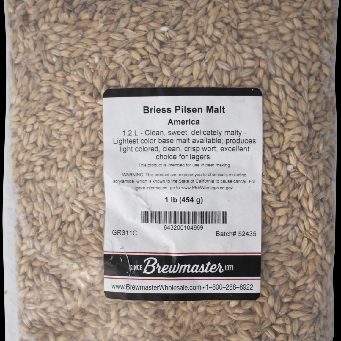 1.2° L - Briess Malting - Briess Pilsen is their lightest colored base malt available. It will produce a very light colored, clean and crisp wort with a delicate malty flavor. Excellent choice as a 2-row base malt for all beer styles, particularly lagers. Great for malt focused beers, as it's clean character allows for the full flavor of specialty malts to shine through.