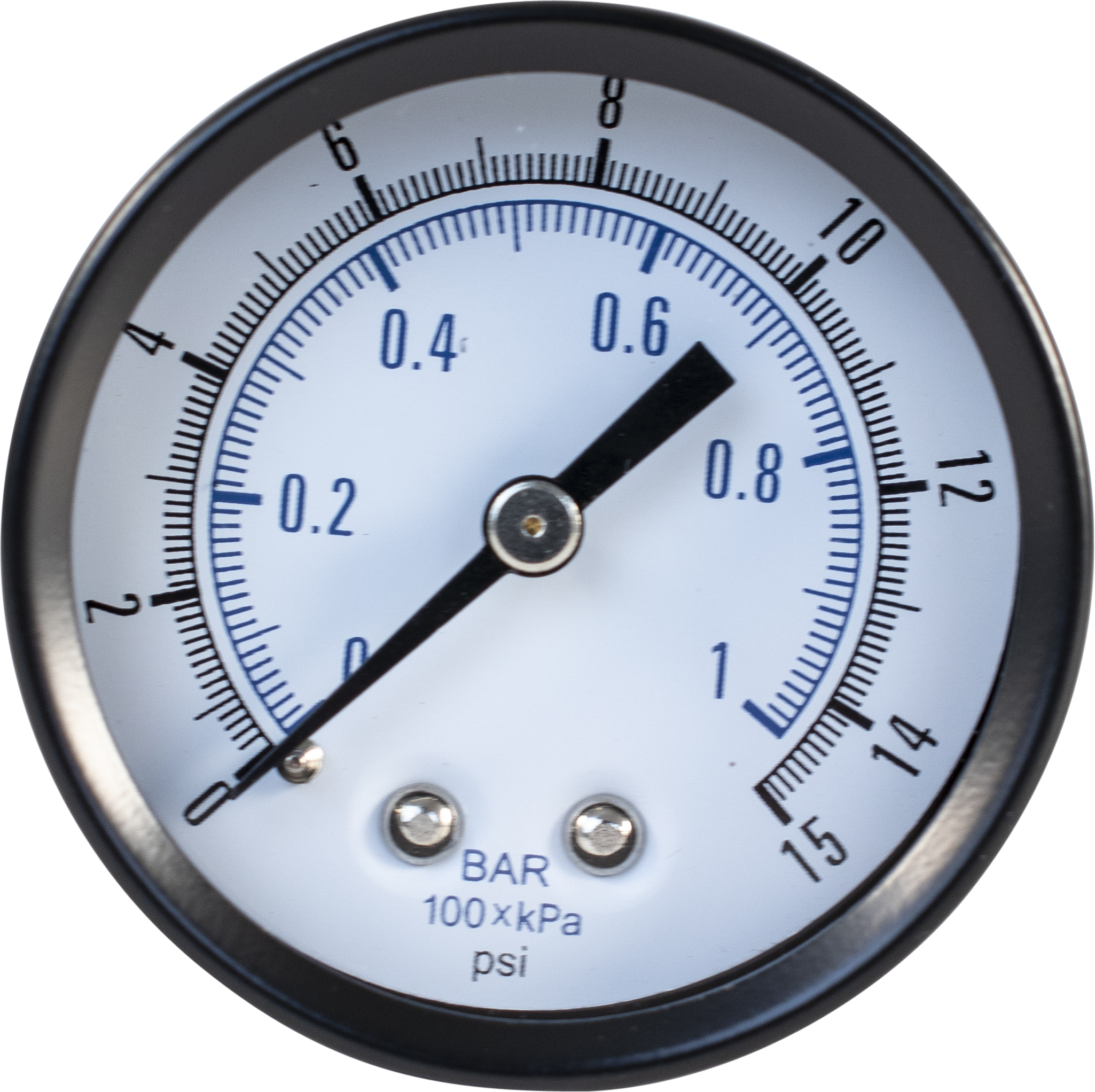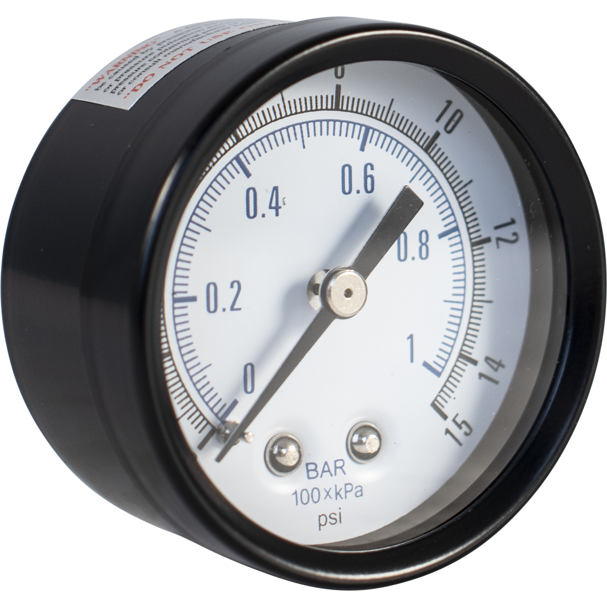 Pressure Gauge (Back Mount) | Low Pressure (0-15 PSI) | 1/4" Back Mounted Thread
