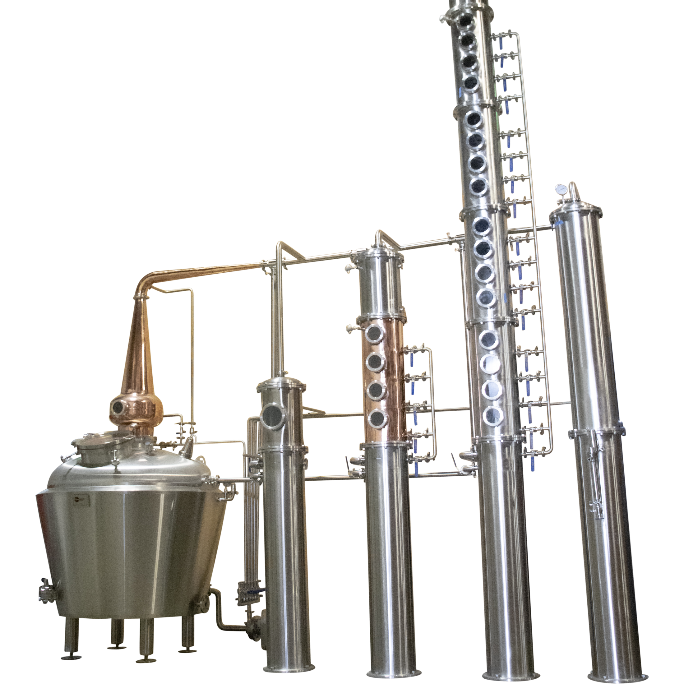 This complete distilling system is the perfect option for craft distilleries that want to make a range of spirits without compromising. Install once and never have to reconfigure the system to switch from a whiskey run to a vodka run. Whereas other stills need to be broken down and rebuilt depending on what spirit is being made, switching between spirits on this multi-column still is as easy as opening and closing a few valves. With the infusion column, 4-plate copper column, and 16-plate stainless column, this unit can quite literally make any spirit you desire—gin, rum, vodka, whiskey, brandy, tequila—it does it all!