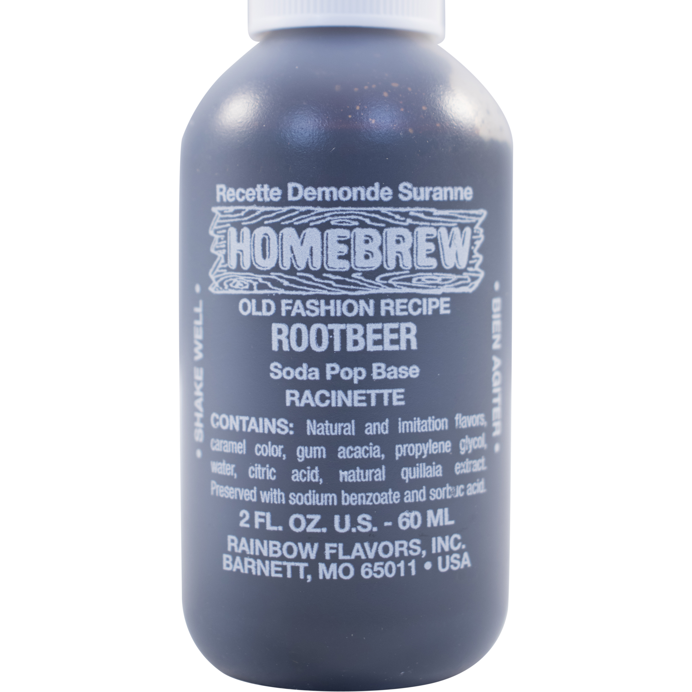 Root beer extract from Rainbow Flavors. Concentrated flavor extract for making your own sodas. Mix with water and sugar, then either carbonate by bottle conditioning with yeast, or force carbonate in a keg.