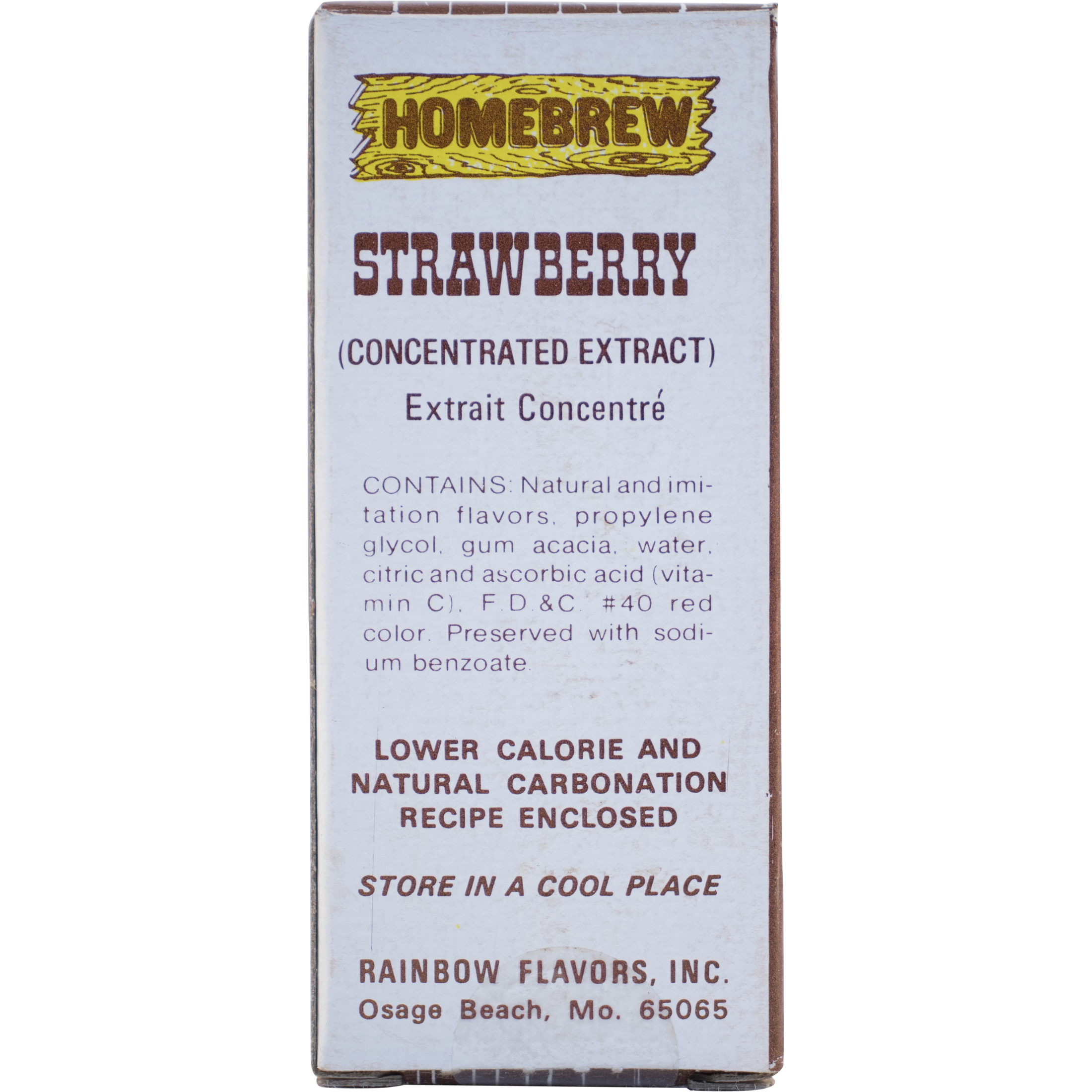 Strawberry soda extract from Rainbow Flavors. Concentrated flavor extract for making your own sodas. Mix with water and sugar, then either carbonate by bottle conditioning with yeast, or force carbonate in a keg.