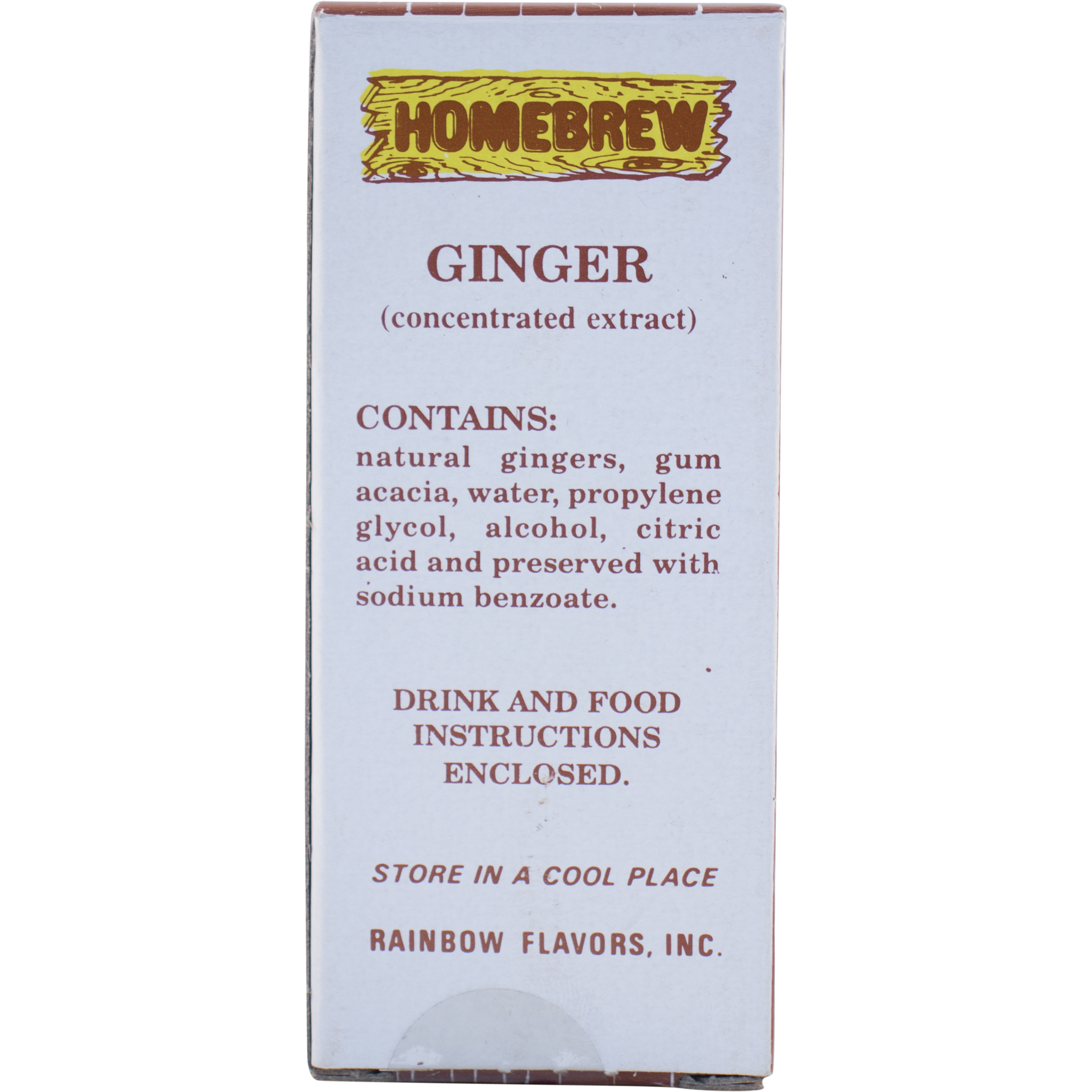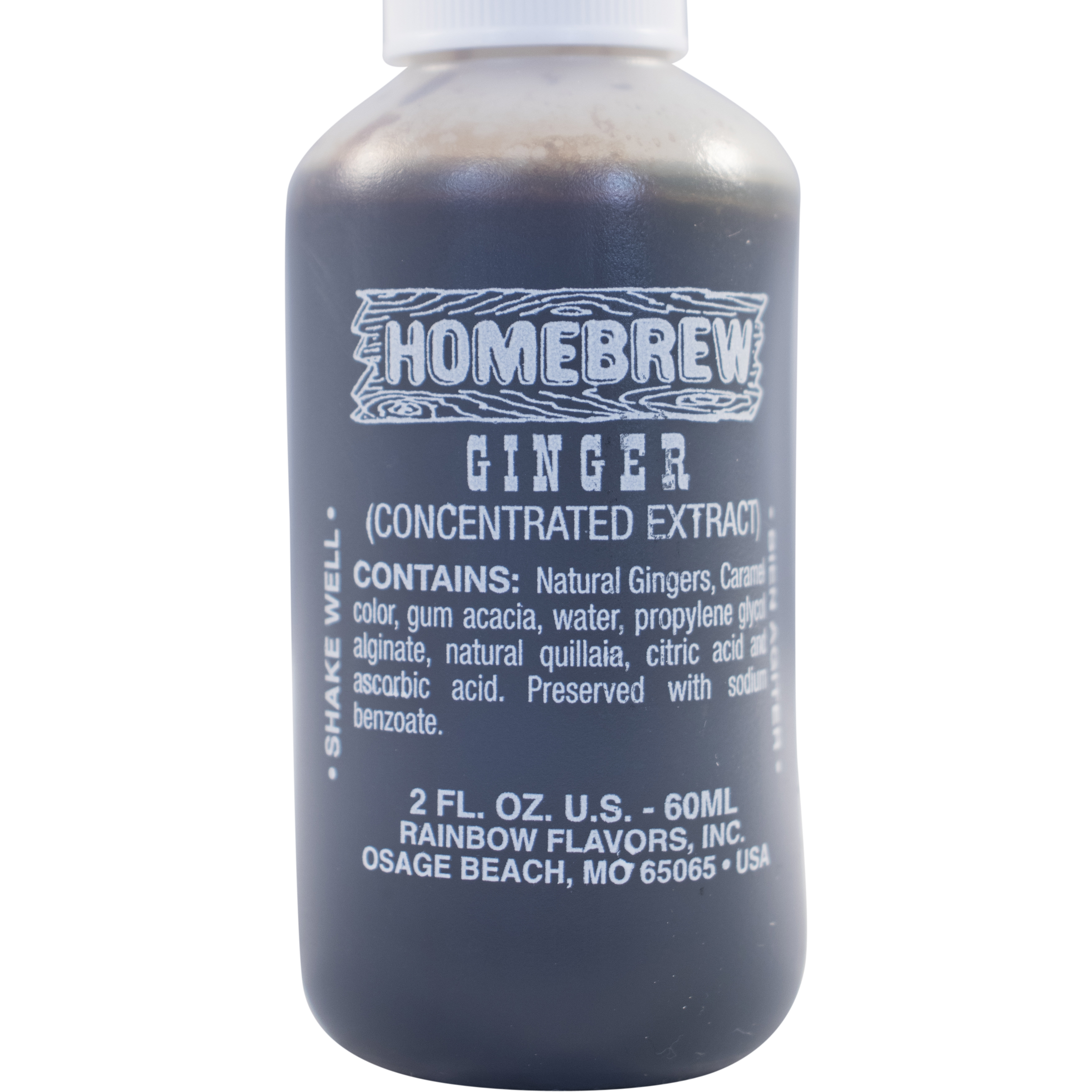 Ginger soda extract from Rainbow Flavors. Concentrated flavor extract for making your own sodas. Mix with water and sugar, then either carbonate by bottle conditioning with yeast, or force carbonate in a keg.