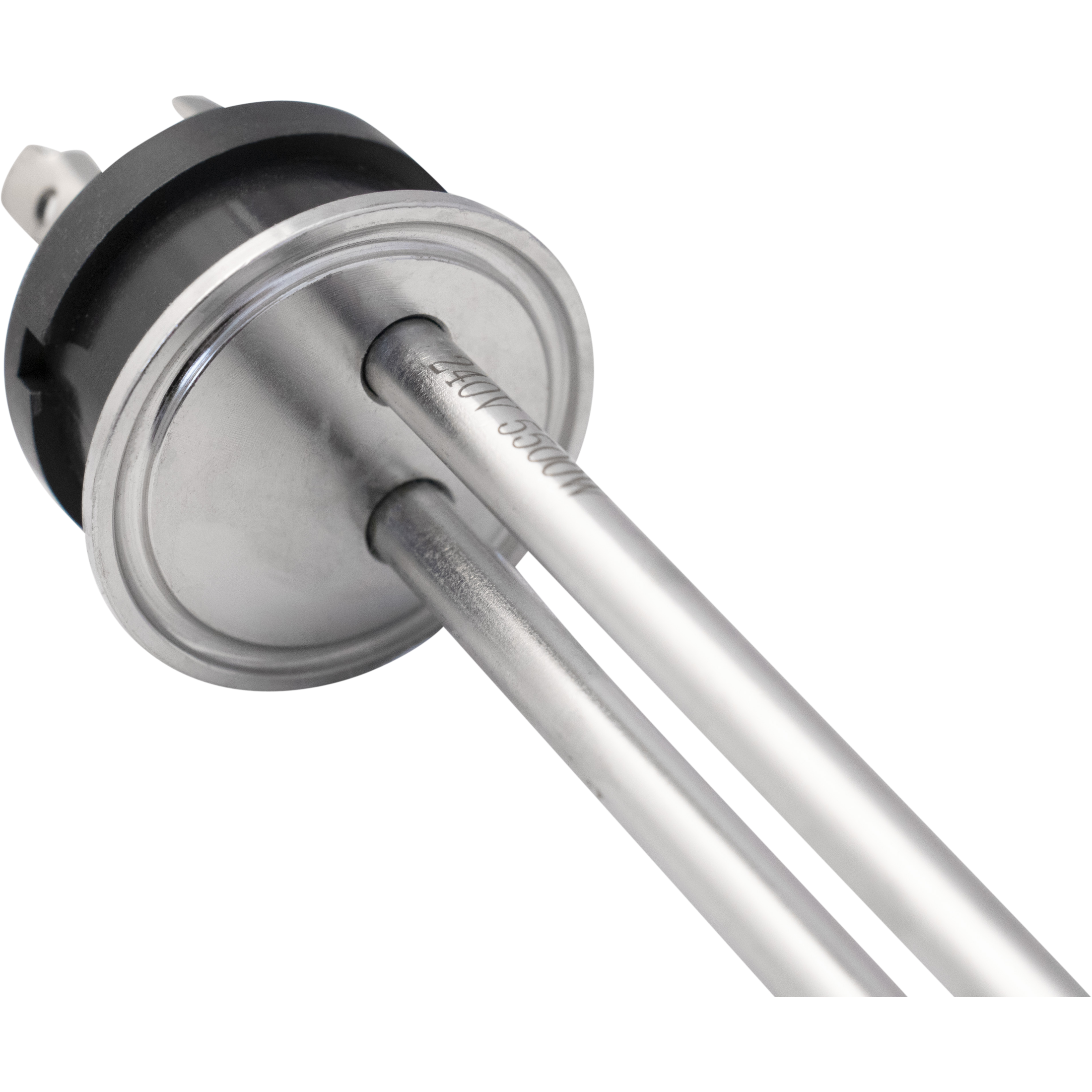 Ripple-style electric brewing heating element with 1.5" tri-clamp connection. With 5,500 watts of power, this unit will easily heat 20+ gallons of wort. Measures 4" wide and 14.5" from TC connection to tip of element.