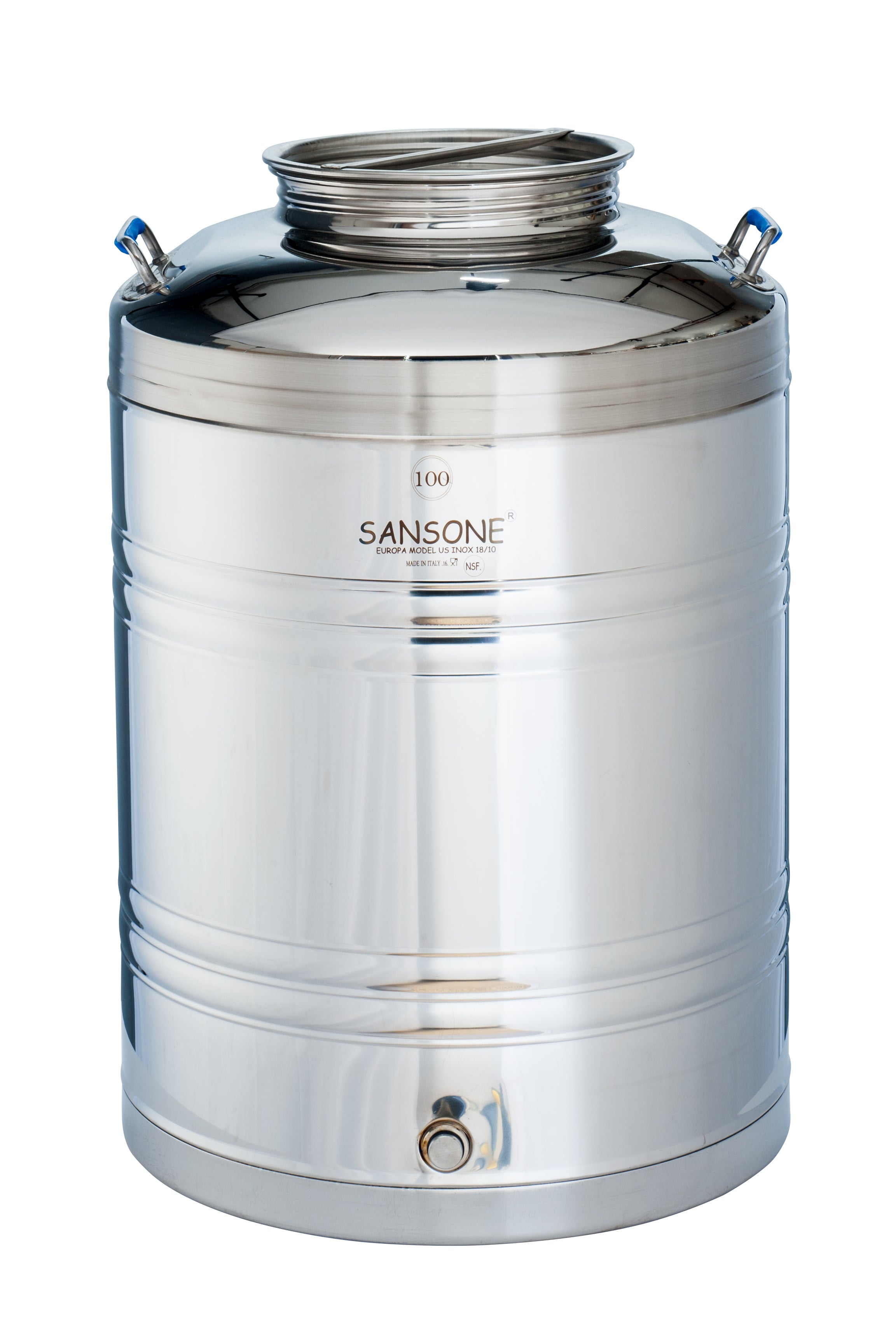 - Sansone Fusti tanks are crafted from high-quality stainless steel with welded handles for long-lasting performance and easy transport