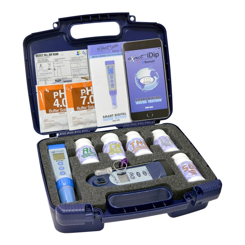 The eXact iDip® Professional Test Kit is the latest generation test kit that combines two state of the art water quality test instruments. The first is the revolutionary Level 1 NSF/ANSI-50 Certified eXact iDip® Smart Photometer System® which integrates patented 2–way wireless communication with any compatible iOS or Android smart device and has the potential to test over 40 water parameters. The second is the NEW eXact® pH+ Meter system which capitalizes on electrochemistry technology combined with Bluetooth connectivity.