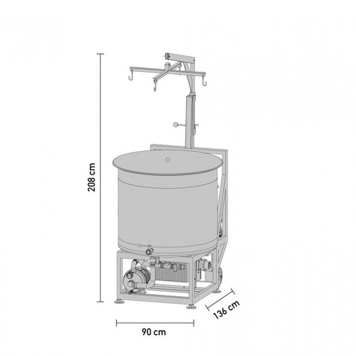 After the grain basket is removed with the included winch you will begin a traditional boil for 60 to 90 minutes. After the boil is over you connect to your glycol system (see our Kreyer Chilly45 GLY411) and use the built-in dimpled cooling jacket to cool the wort down. Simple.