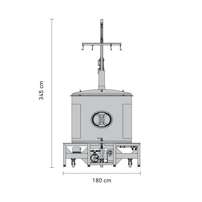After the grain basket is removed with the included winch you will begin a traditional boil for 60 to 90 minutes. After the boil is over you connect to your glycol system (see our Kreyer Chilly45, GLY410) and use the built in dimpled cooling jacket to cool the wort down. Simple.