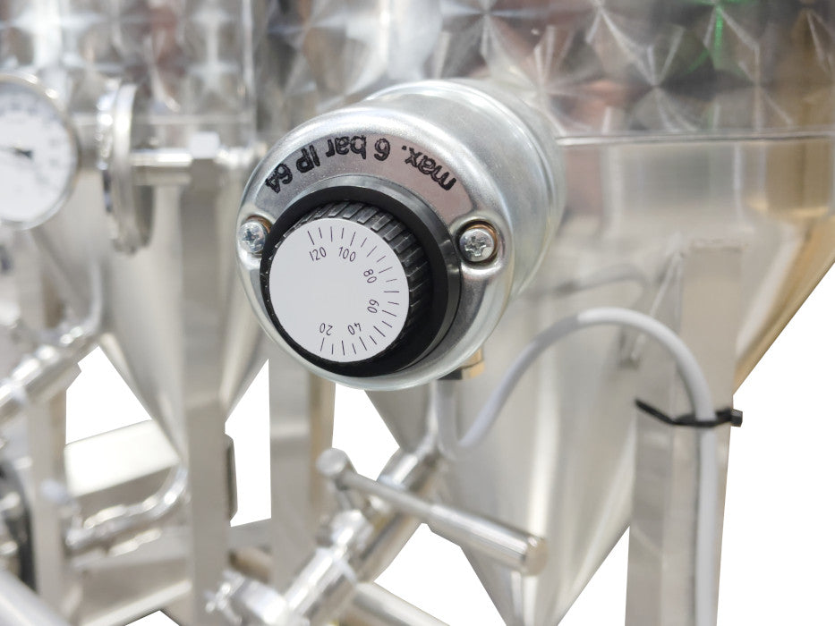This Speidel CIP System is designed for efficient and thorough cleaning of fermenters and closed systems like plate chillers. Equipped with a temperature display and heating device for caustic, a temperature gauge for acid, and a powerful stainless steel delivery pump, this system ensures effective cleaning, acidification, and rinsing processes. The unit is compact, movable with caster wheels, and features easy connection options.