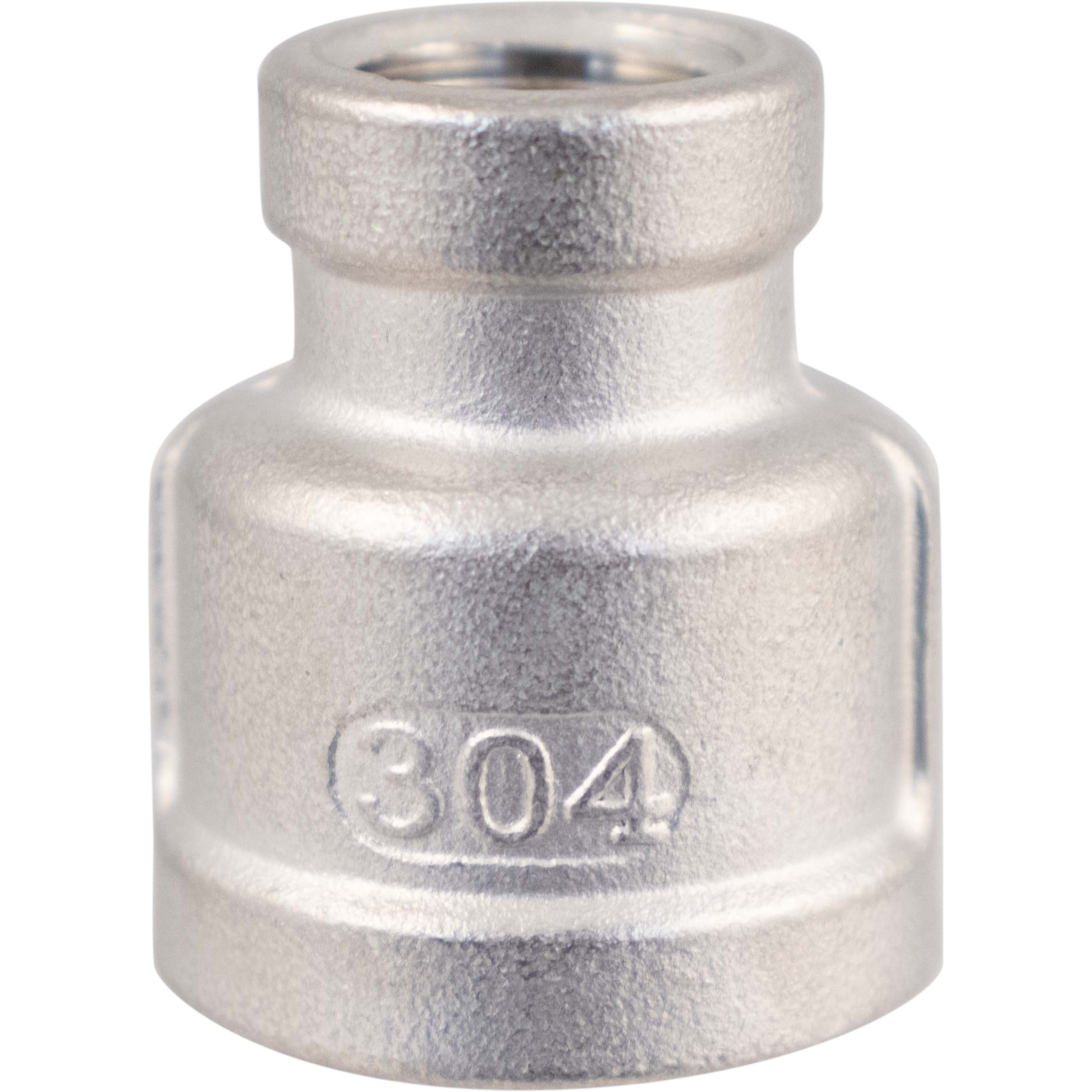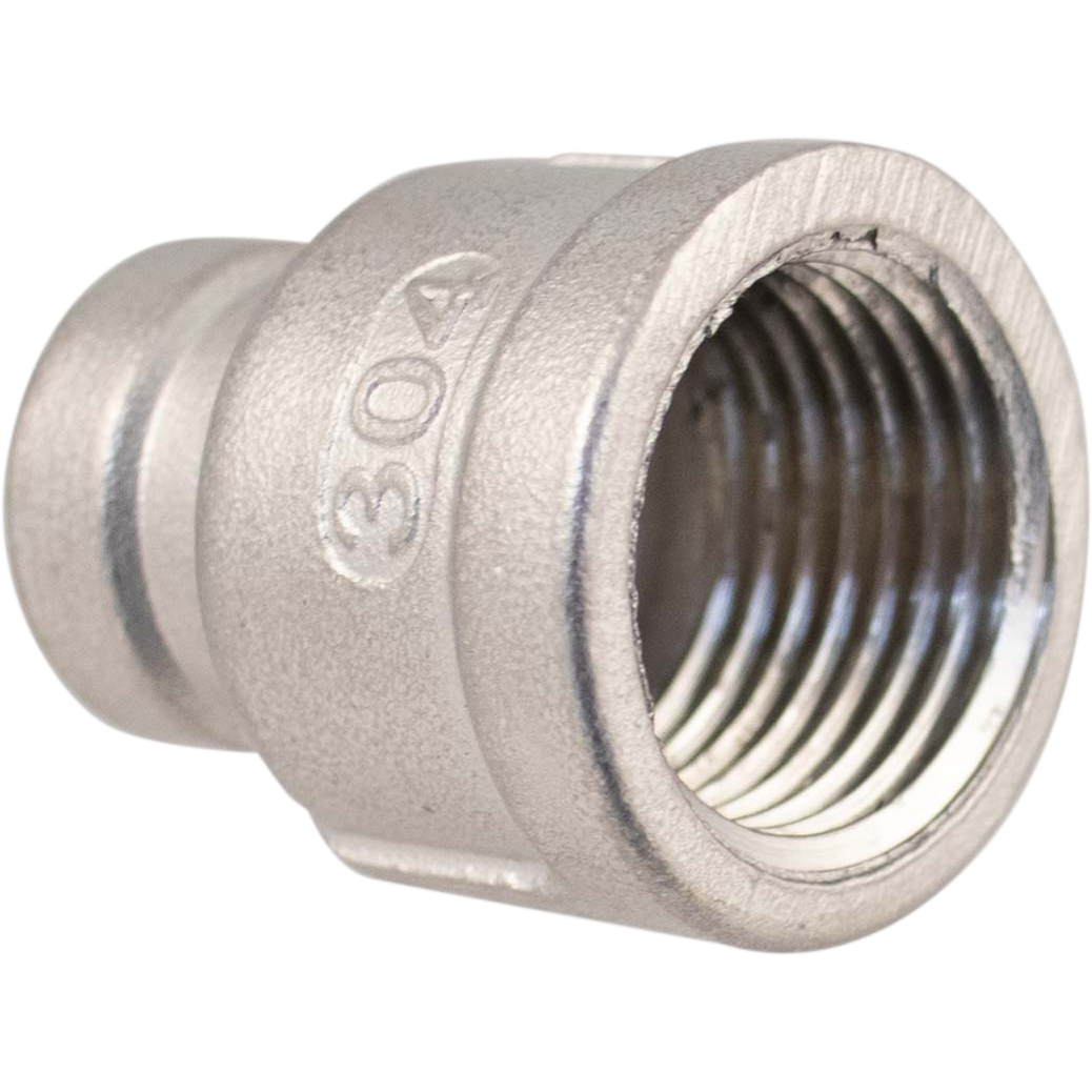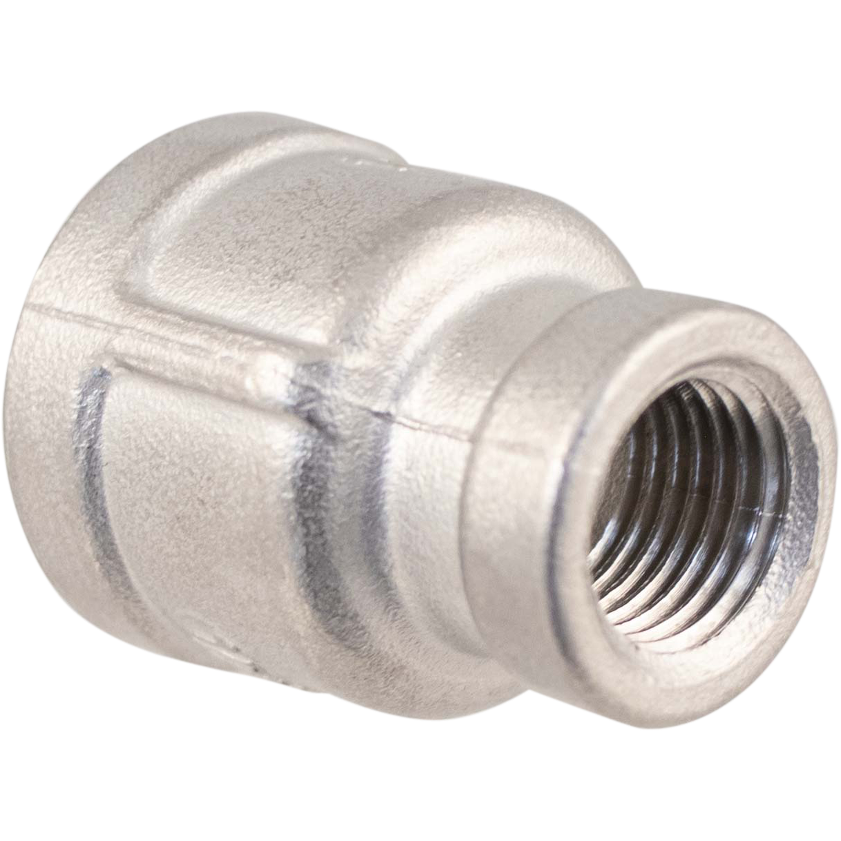 Stainless steel coupler or "reducing socket". 1/2" BSPP x 1/4" BSPP. Made from stainless steel.
