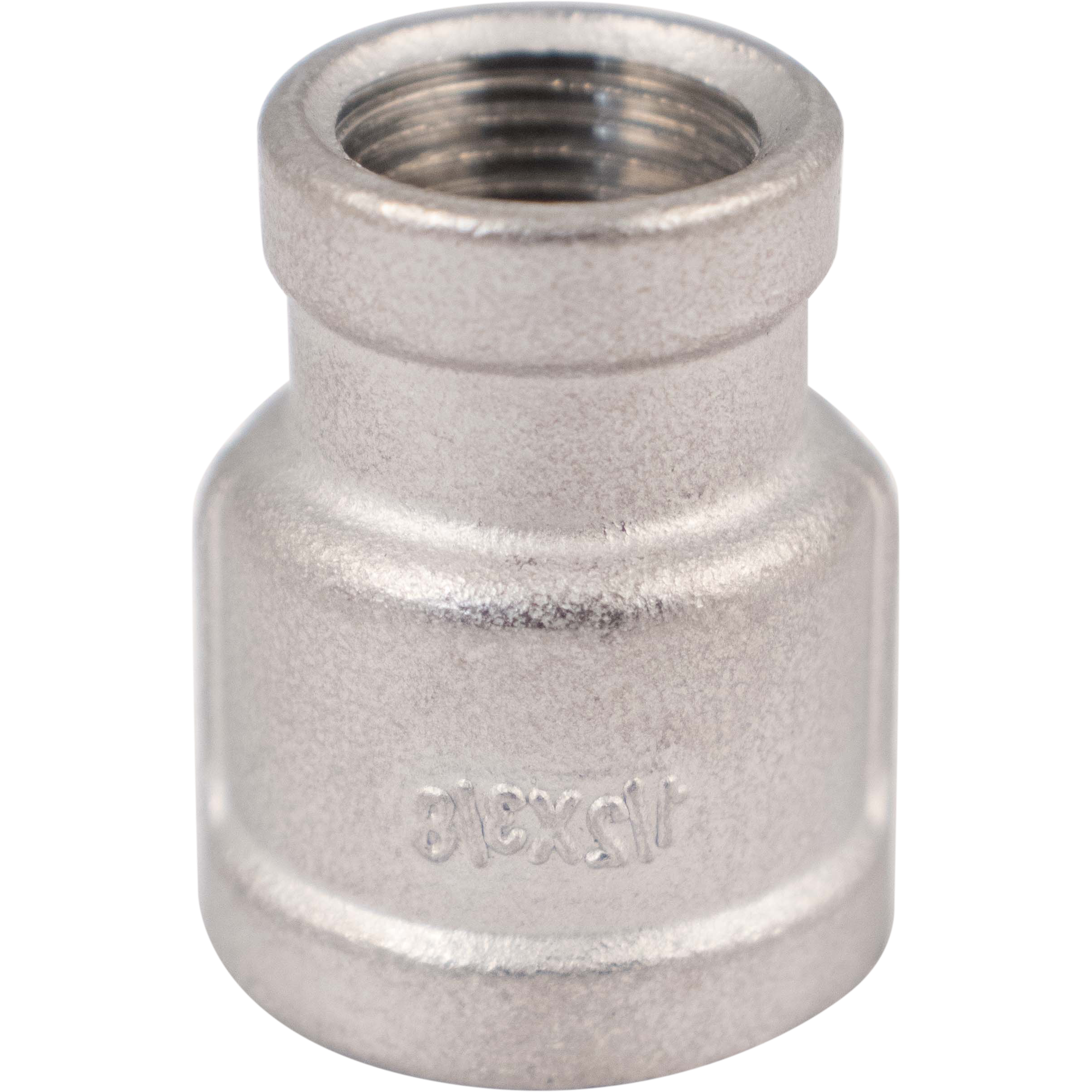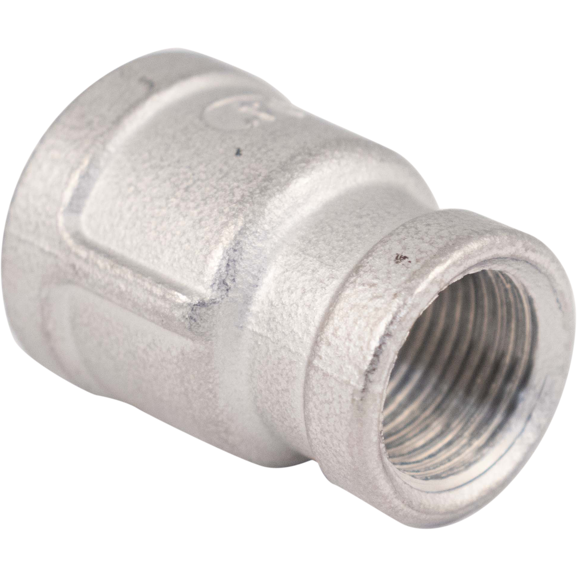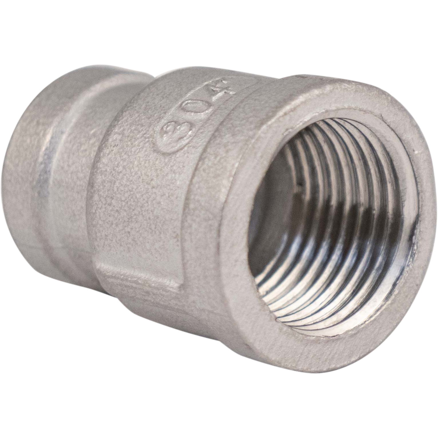 Stainless steel coupler or "reducing socket". 1/2" BSPP x 3/8" BSPP. Made from stainless steel.