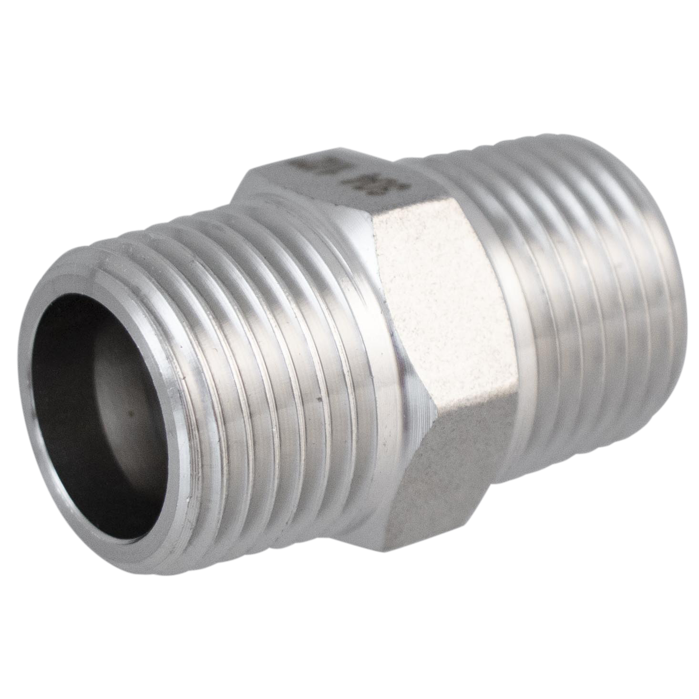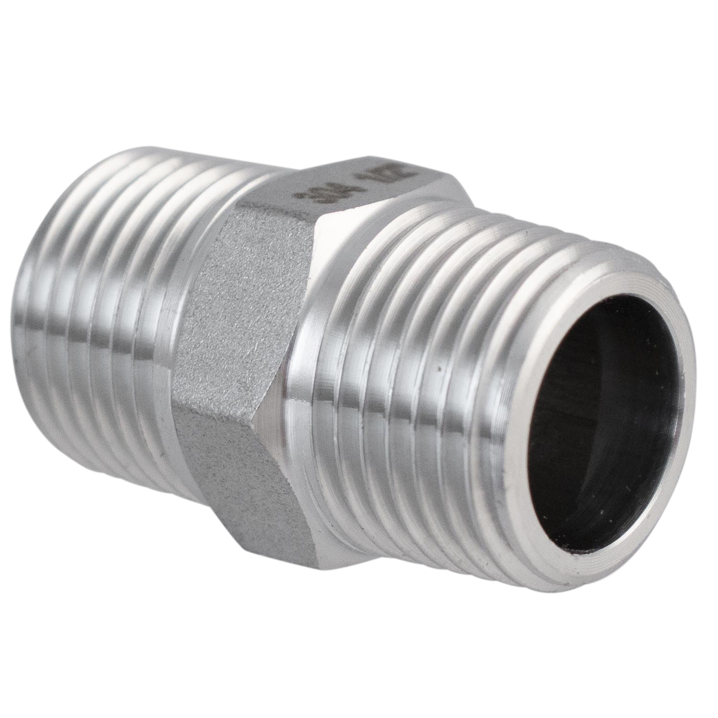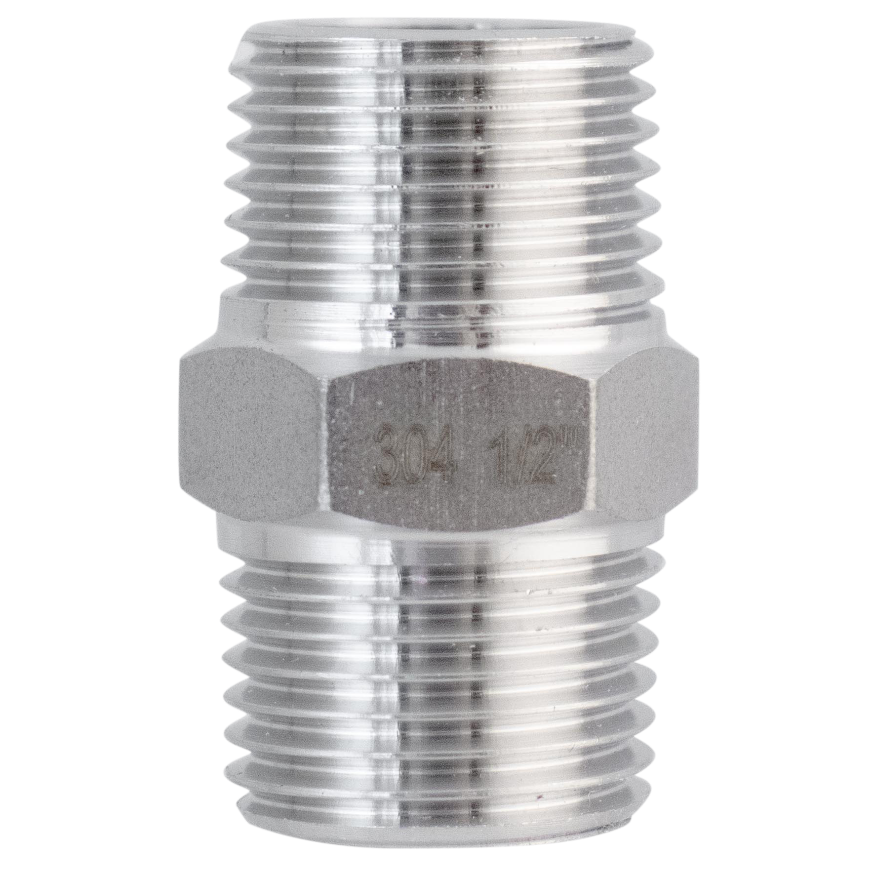 An excellent upgrade to a standard nipple, these have a hex nut in the center to allow easy tightening and loosening in whatever application it's used! 1/2" male BSP threads.