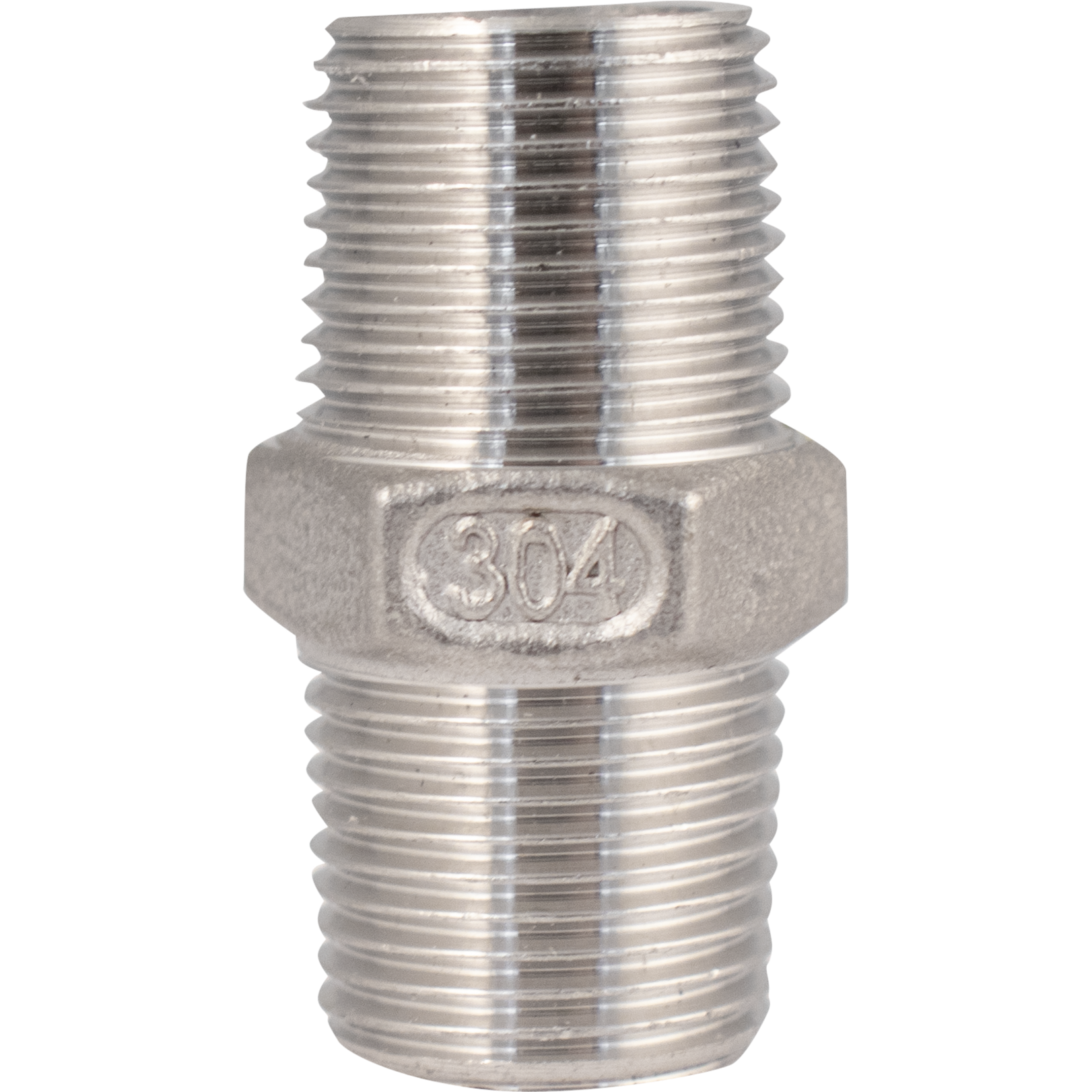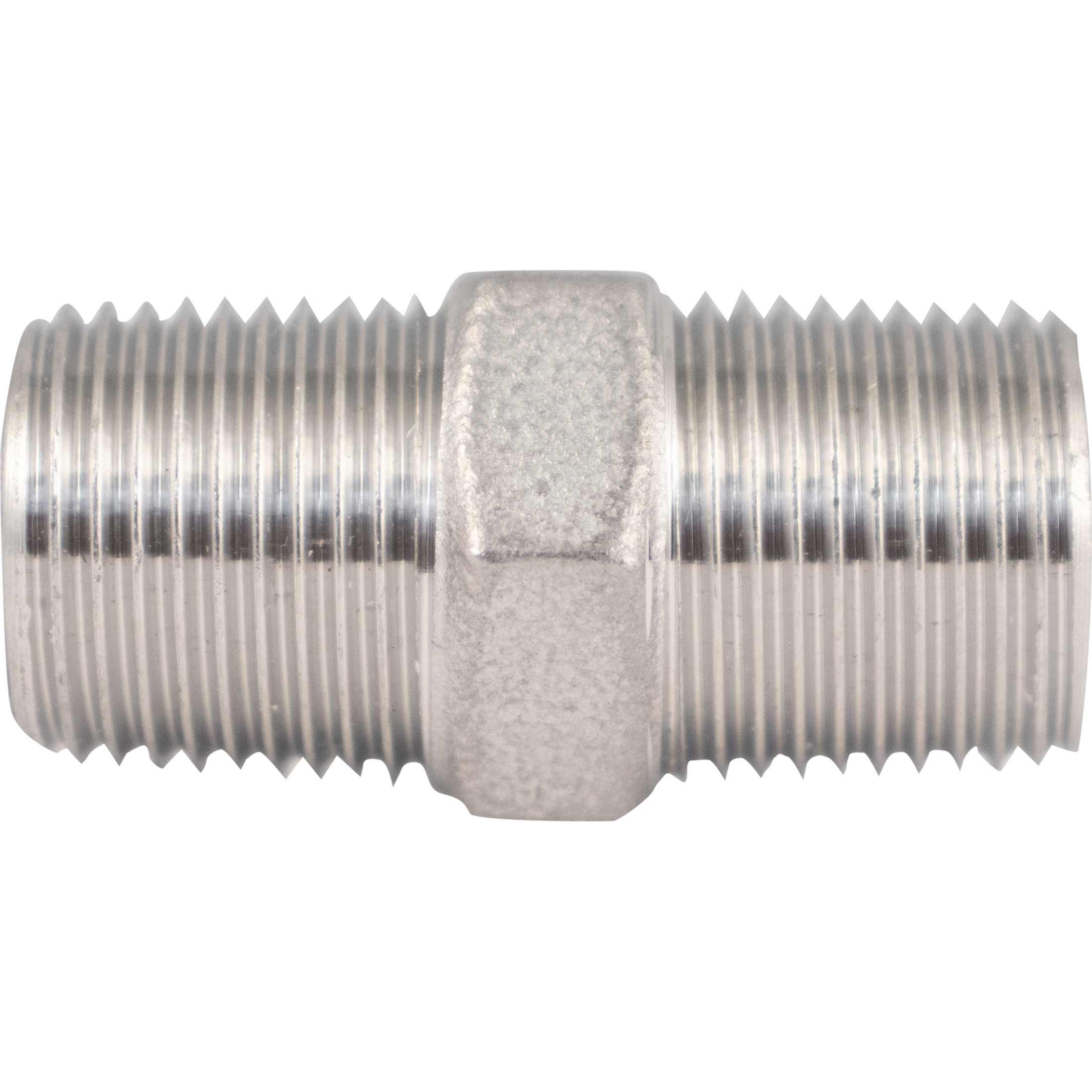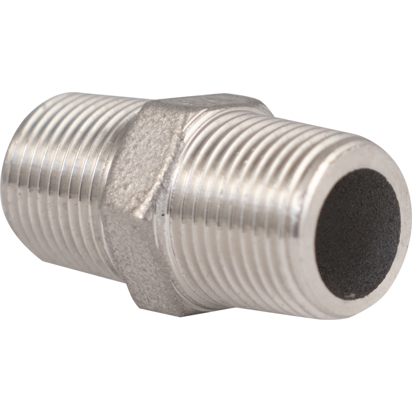 An excellent upgrade to a standard nipple, these have a hex nut in the center to allow easy tightening and loosening in whatever application it's used! 3/4" male BSP threads.