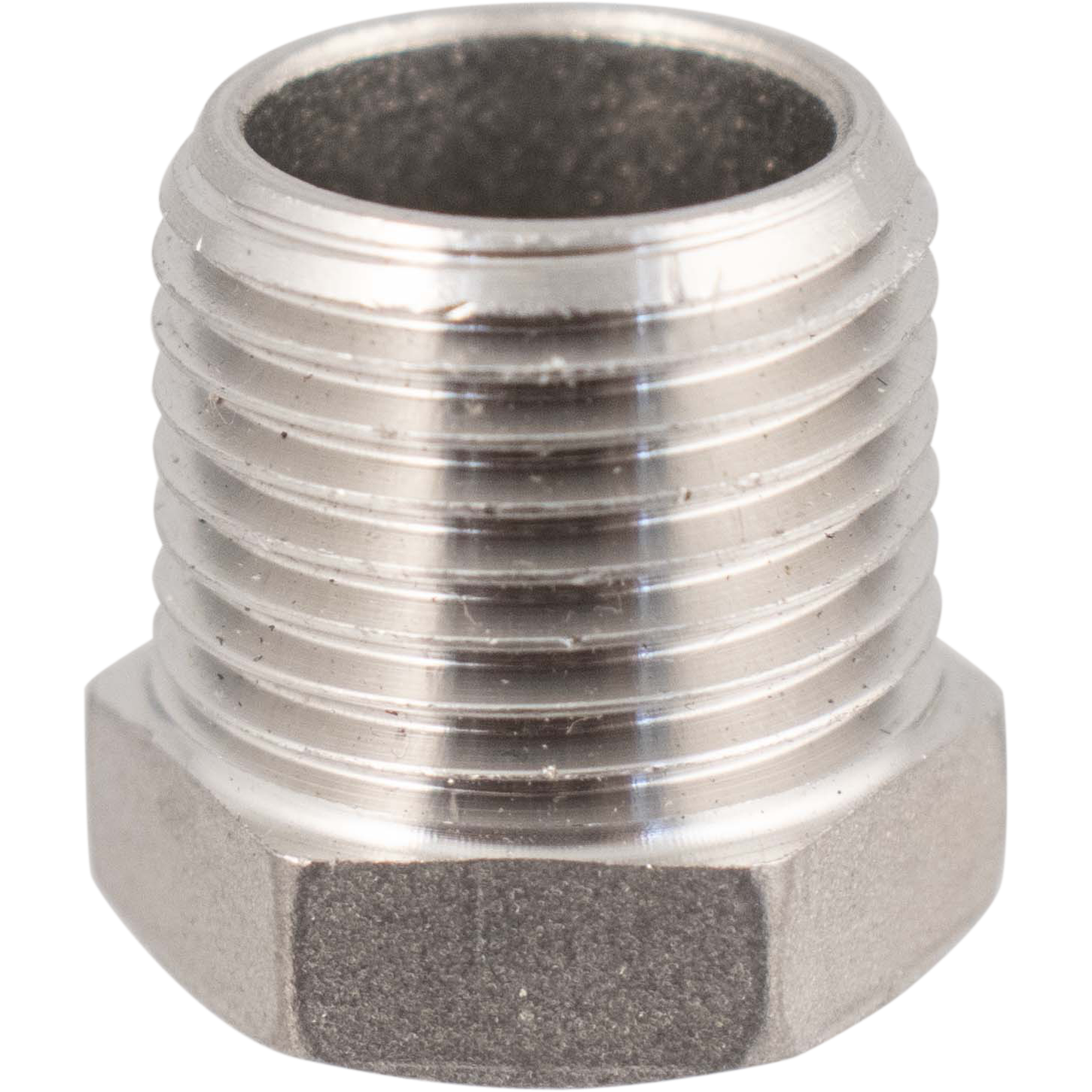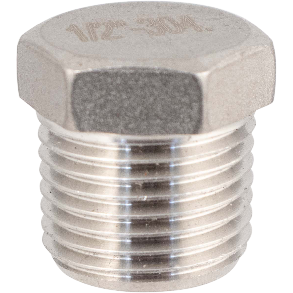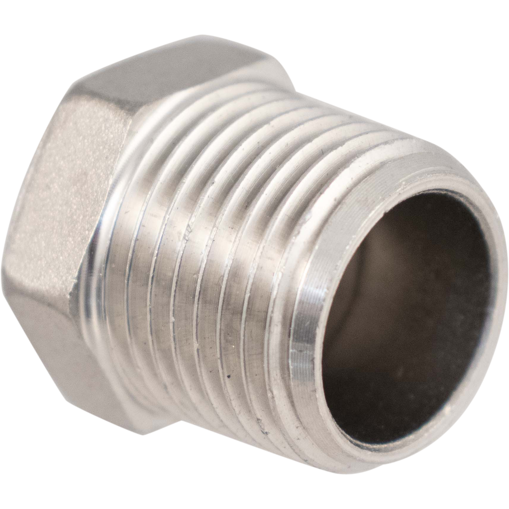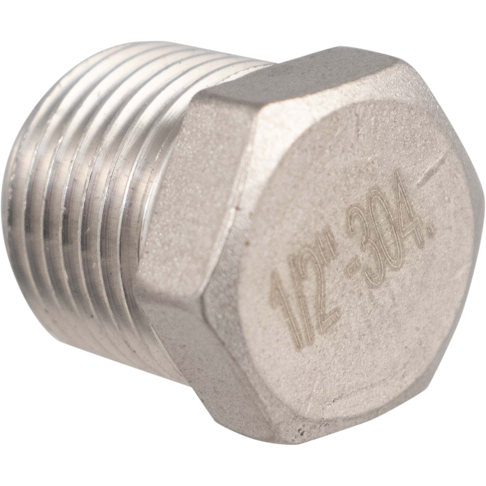 1/2" male BSPP stainless steel plug. Hex head design for easy installation or removal with a wrench.